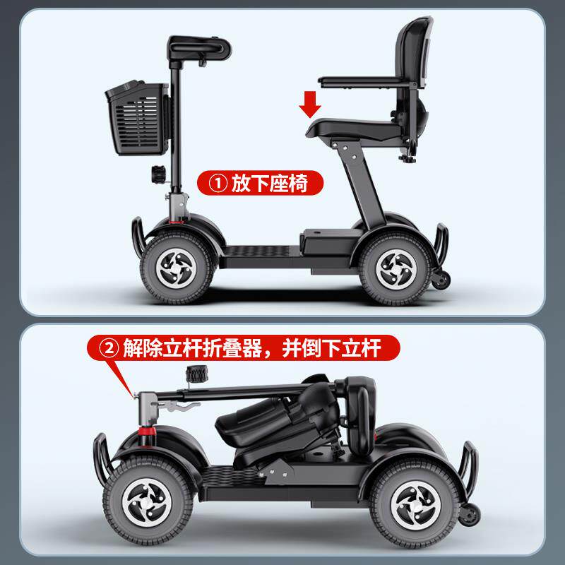 贝莱威老人代步车四轮电动残疾人双人老年可提充电助力车锂电