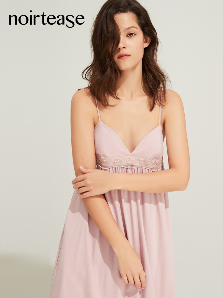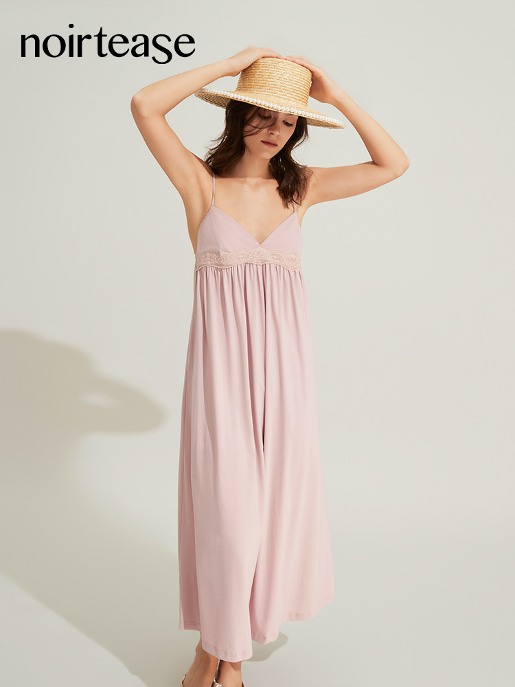 NoirTease奈黎诗夏季薄款性感蕾丝睡衣女加长款大码莫代尔棉睡裙