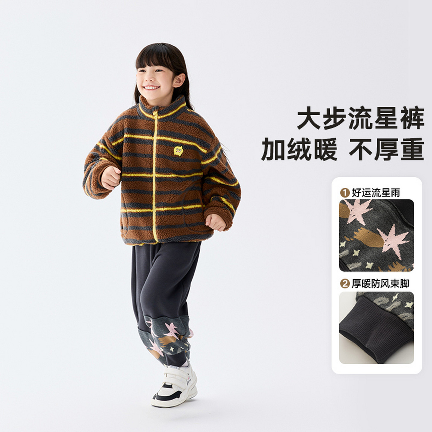 马拉丁儿童裤子25冬新款女小童密织提花软糯加绒束脚卫裤