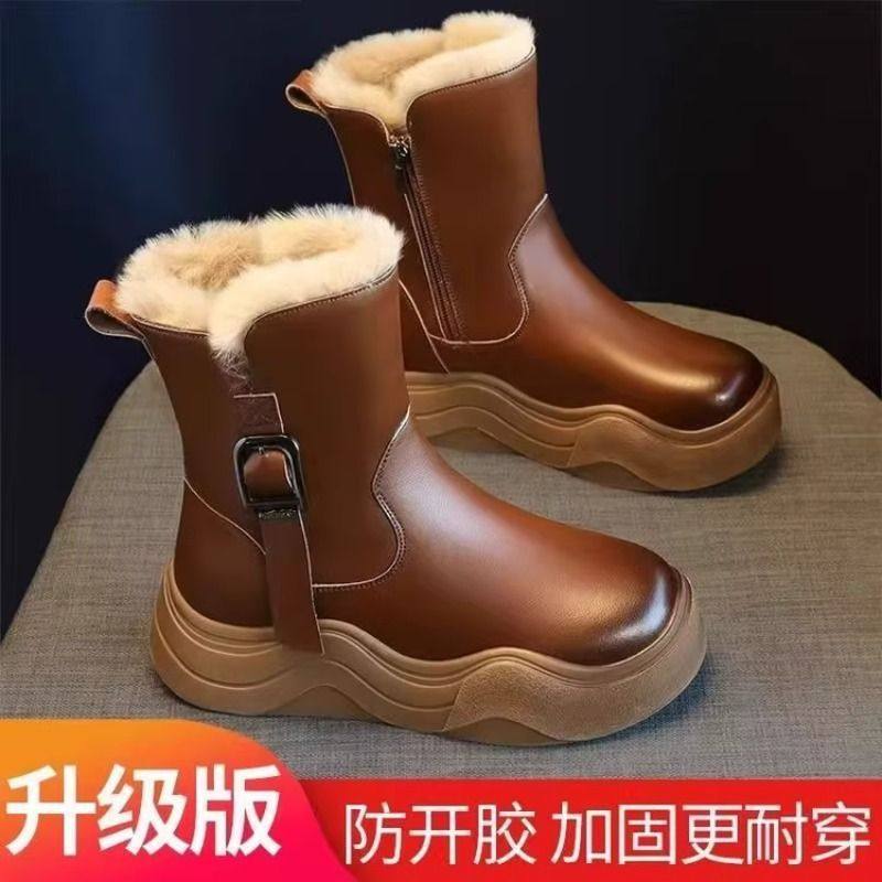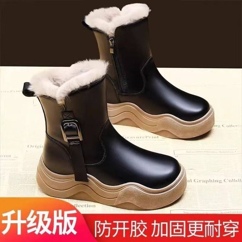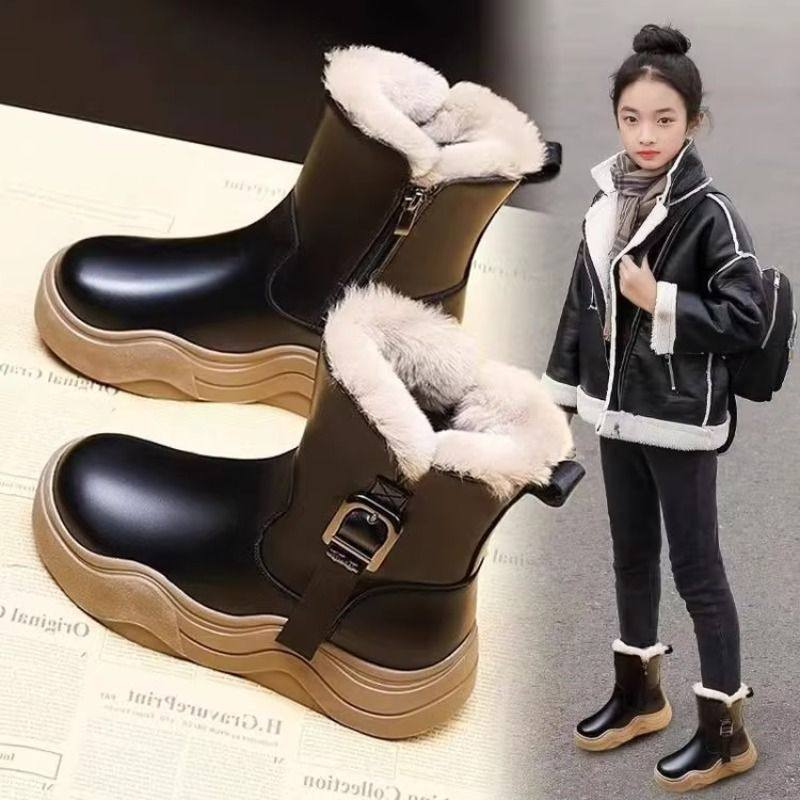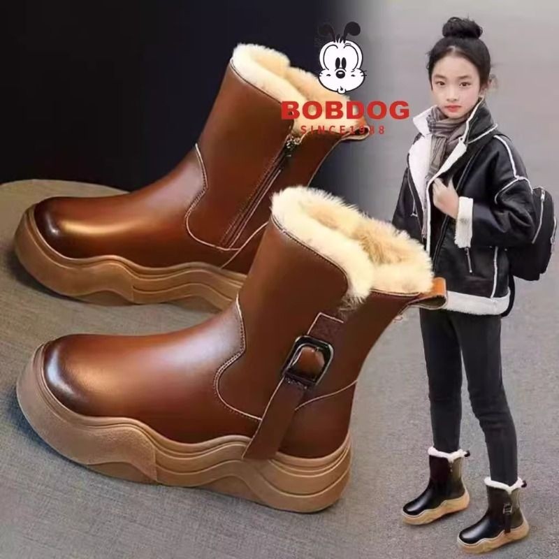 巴布豆2025秋新款雪地靴儿童靴子加绒加厚棉鞋冬季棉靴防滑抗寒