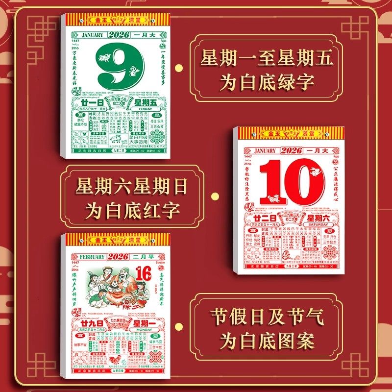 新款2026马年老黄历日历老式挂历万年历正版手撕黄道吉日家用挂墙传统特大号老皇历每天一页日程