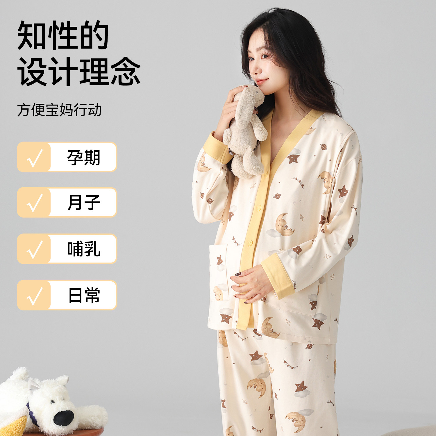 都市丽人纯棉月子服女新款孕妇睡衣孕期产后产妇哺乳带胸垫家居服