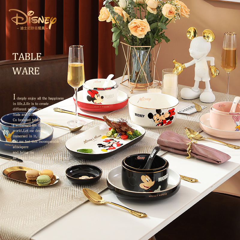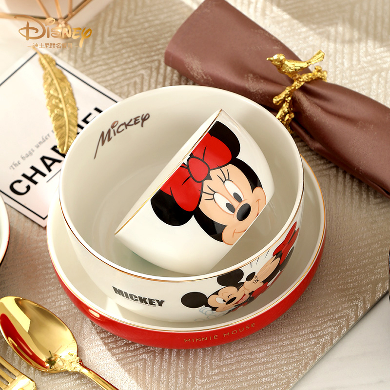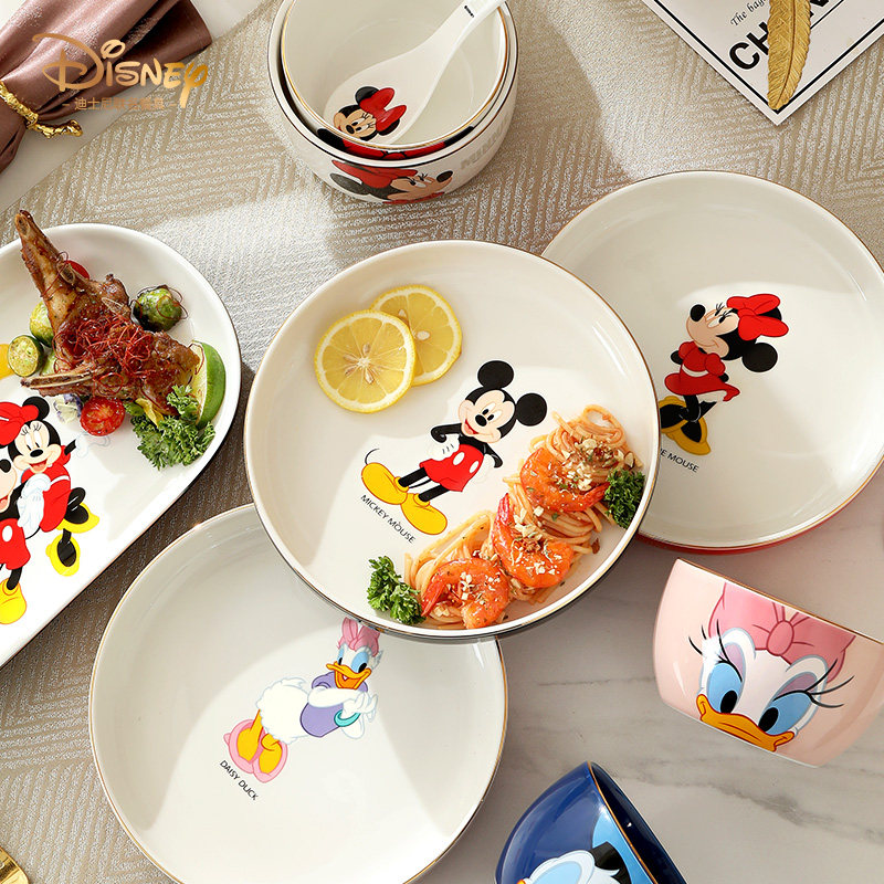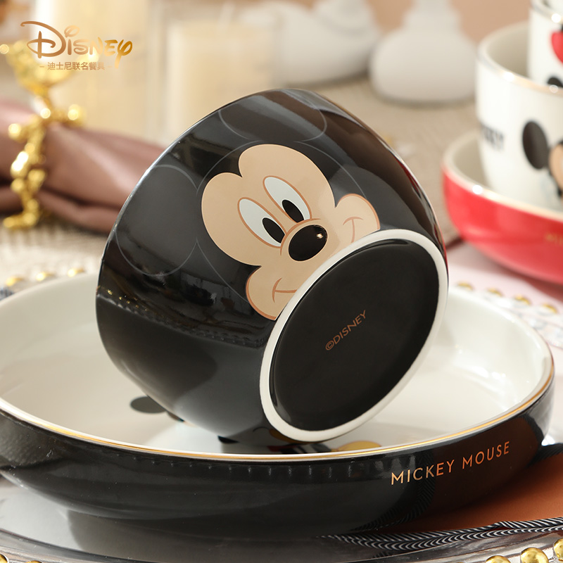 迪士尼卡通餐具陶瓷米奇碗单个米饭碗菜盘子家用可爱碗盘碟套装