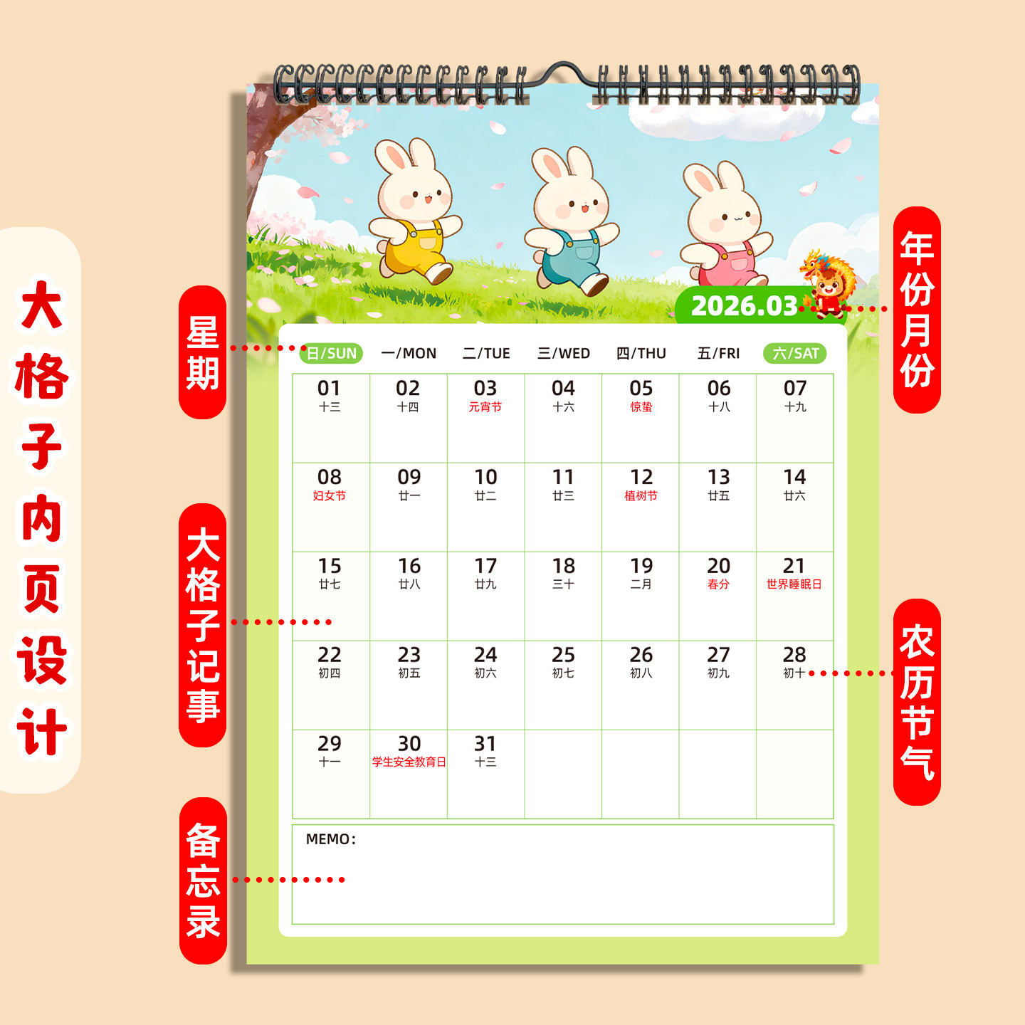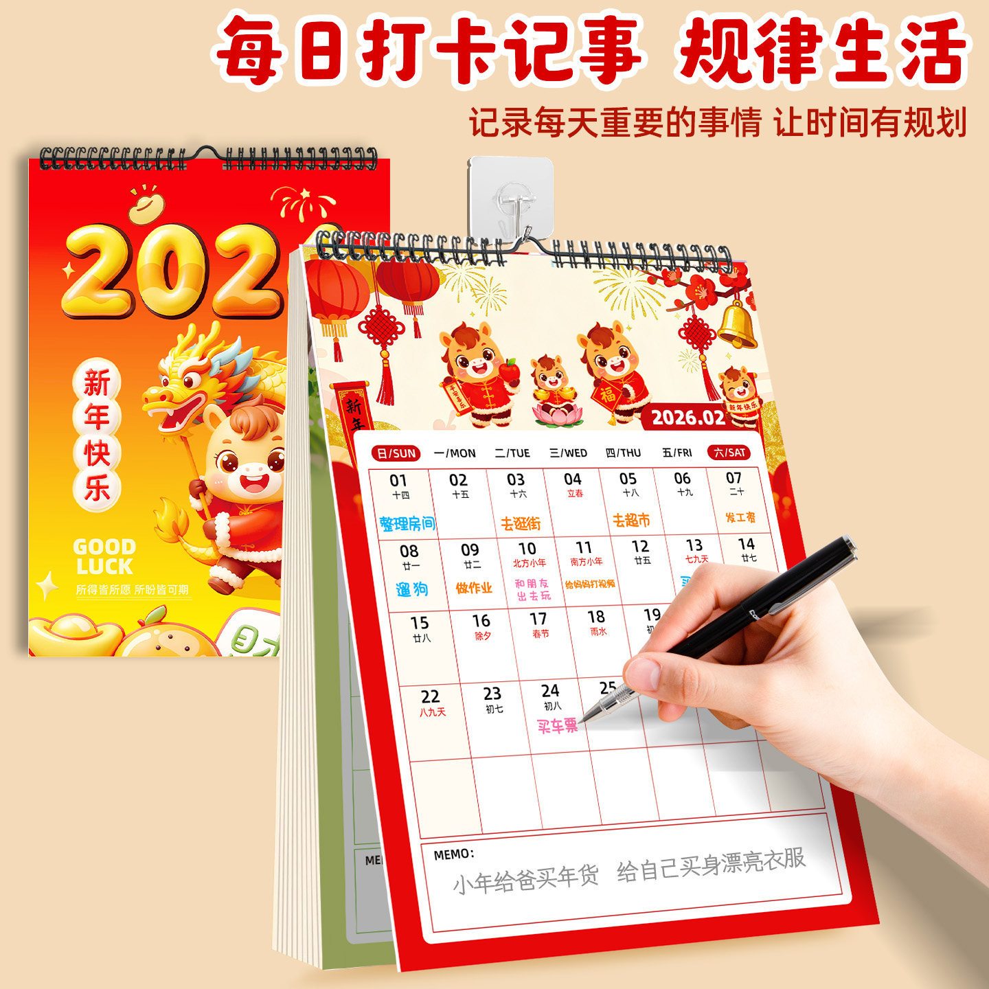 2026年挂历新款马年中国风红色大四开高档福牌家用创意挂墙手撕日历大号挂式大尺寸月历年历公司定制礼品广告
