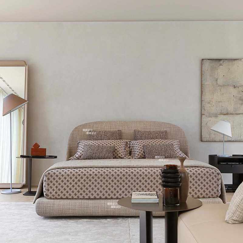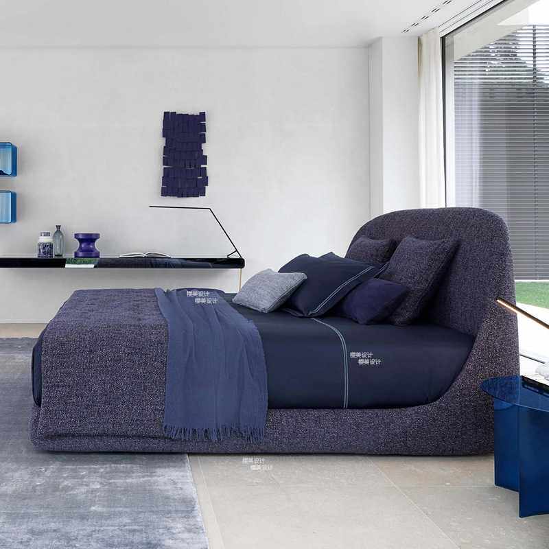 北欧现代大小户型落地床意式极简1.8米布艺软包婚床设计师民宿床