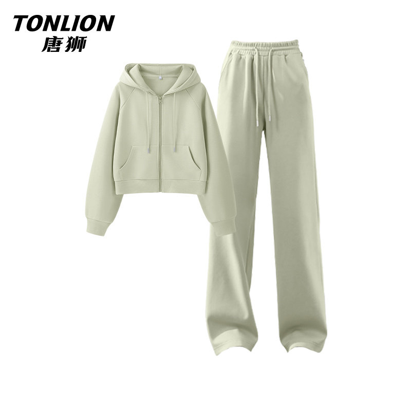 【德绒套装】安欧兔休闲运动套装女立领上衣阔腿裤跑步健身服外套