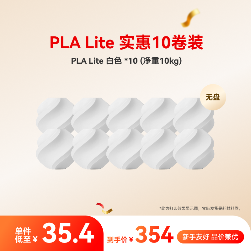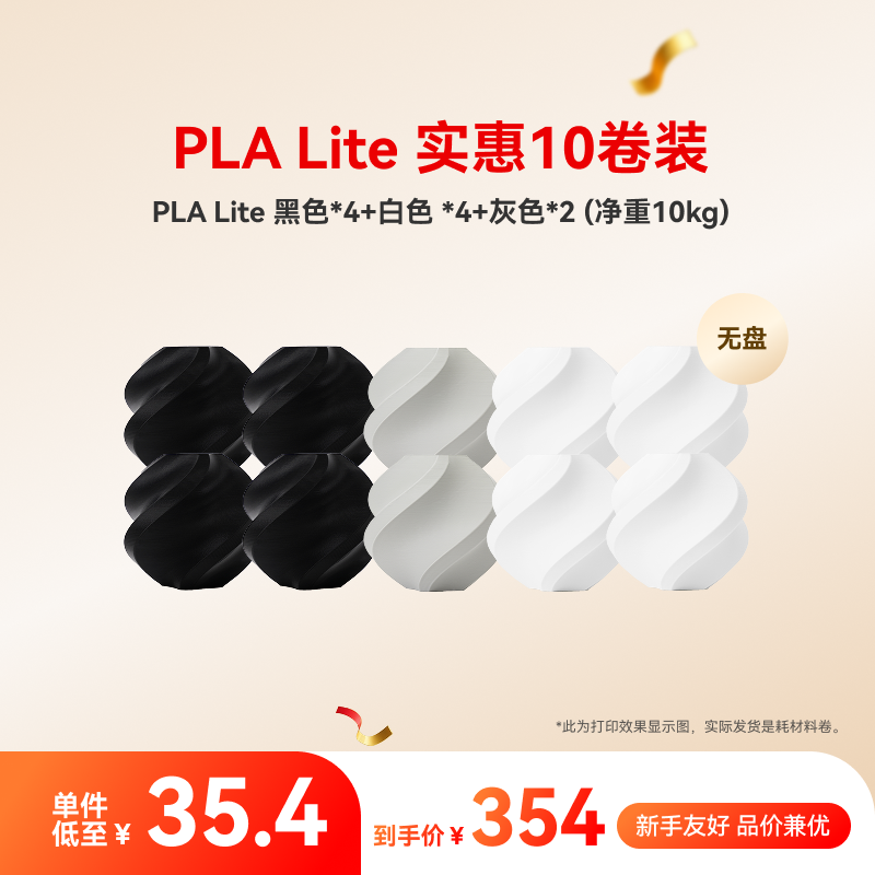 拓竹PLA Lite实惠10件装 多色组合 3D打印耗材 净重10kg RFID智能参数识别