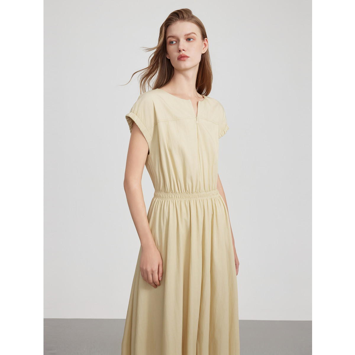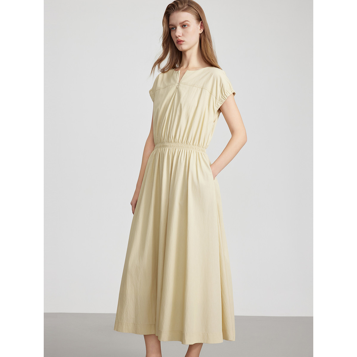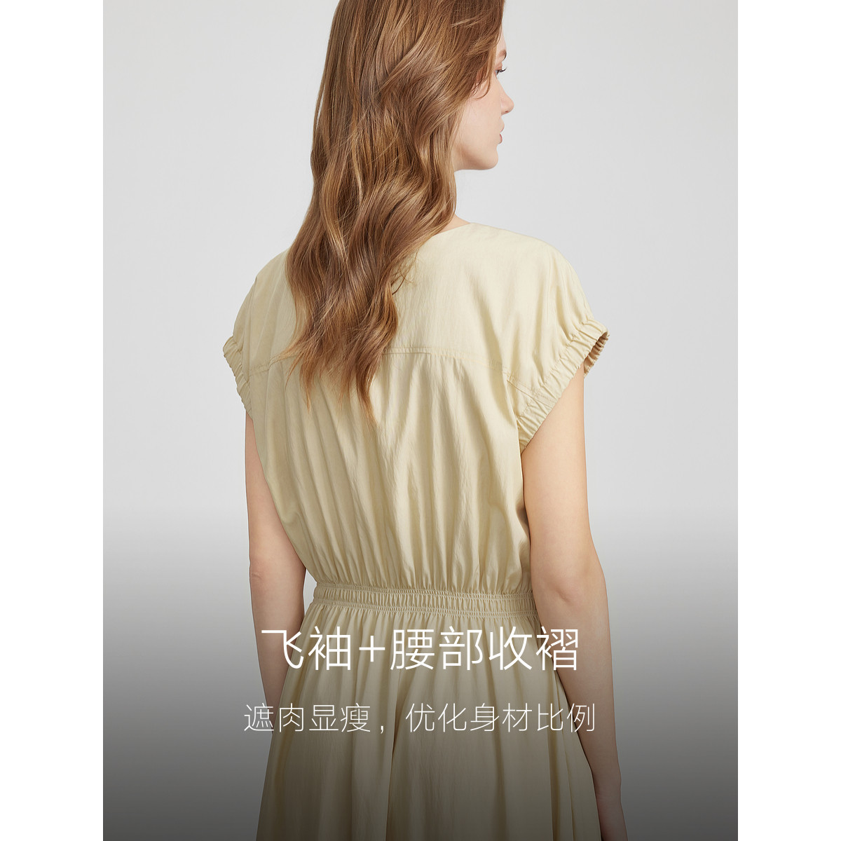 ELLE法式飞飞袖优雅连衣裙女2025夏季新款时髦收腰褶皱感气质长裙