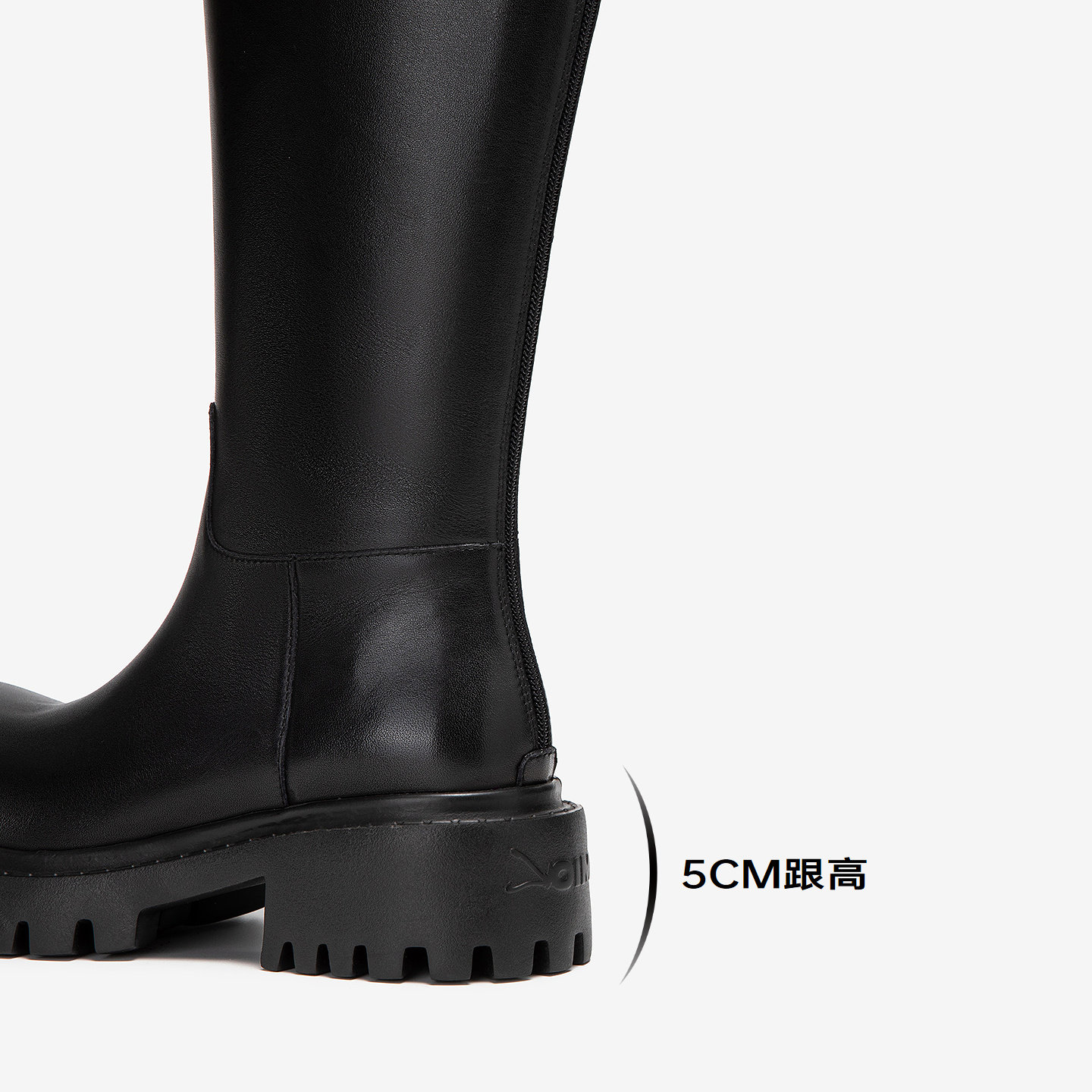 吴宣仪天美意千金靴复古厚底骑士靴加绒长靴女鞋子新款时装靴皮靴