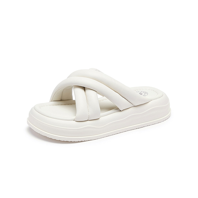 骆驼女鞋2026夏季新款真皮沙滩凉鞋休闲厚底一字拖平底拖鞋女外穿