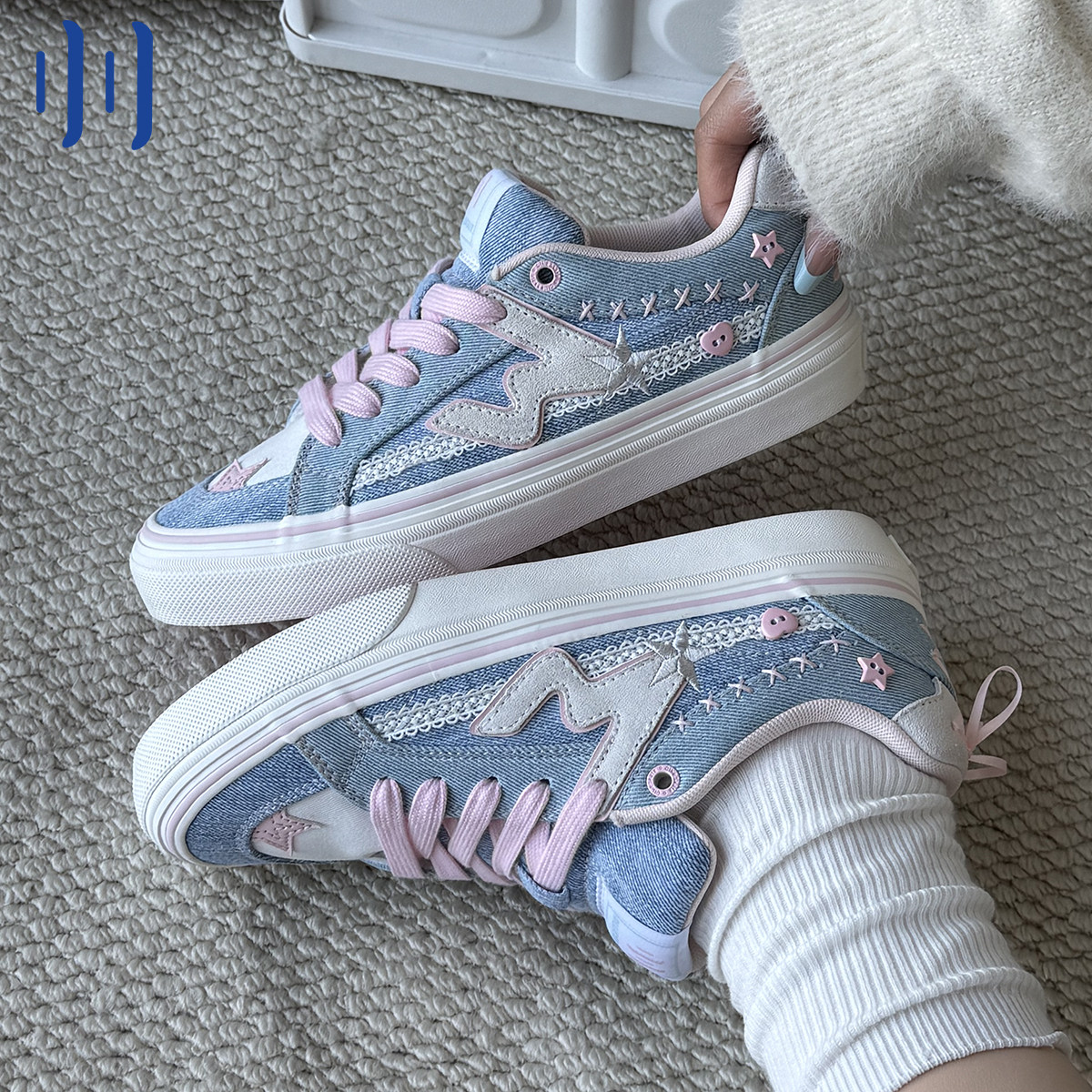顽刻官方牛仔蓝配色情人节款W系列冬季休闲低帮男女国潮滑板鞋
