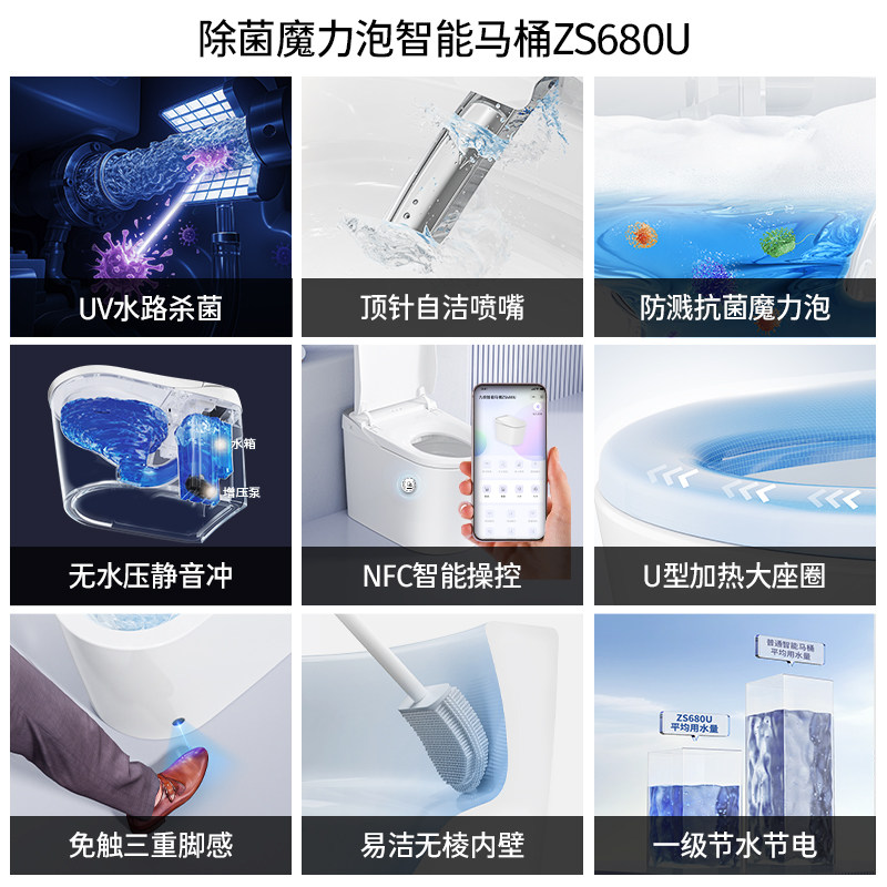 九牧轻智能马桶坐便器座全自动电尺寸家用带水箱泡沫盾冲洗ZS680u