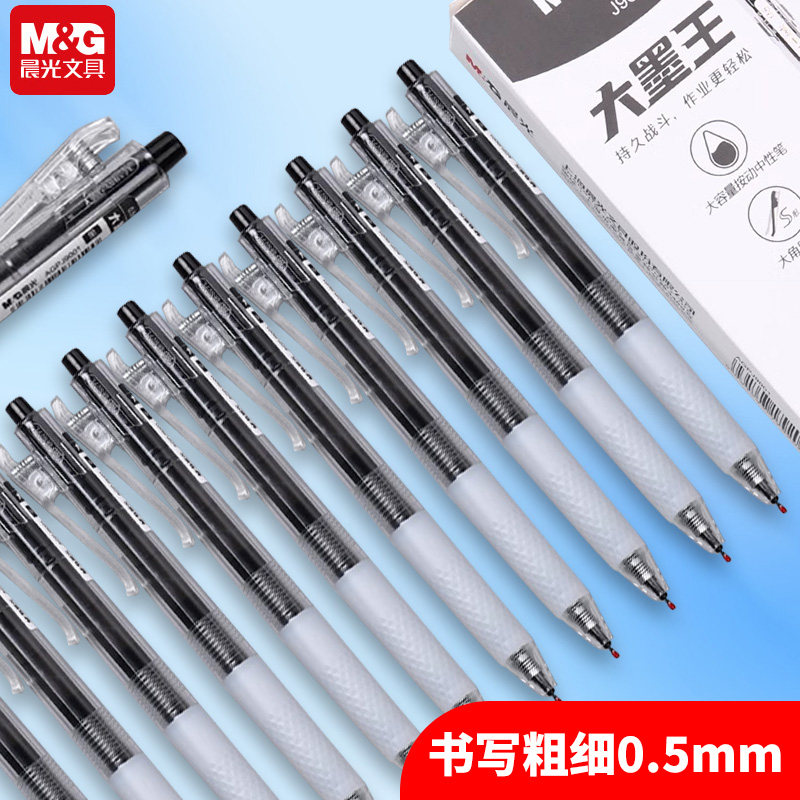 晨光作业神器按动式中性笔大墨王速干ST笔头0.5mm学生用刷题笔考试必备初中生刷题专用碳素大容量黑色签字笔