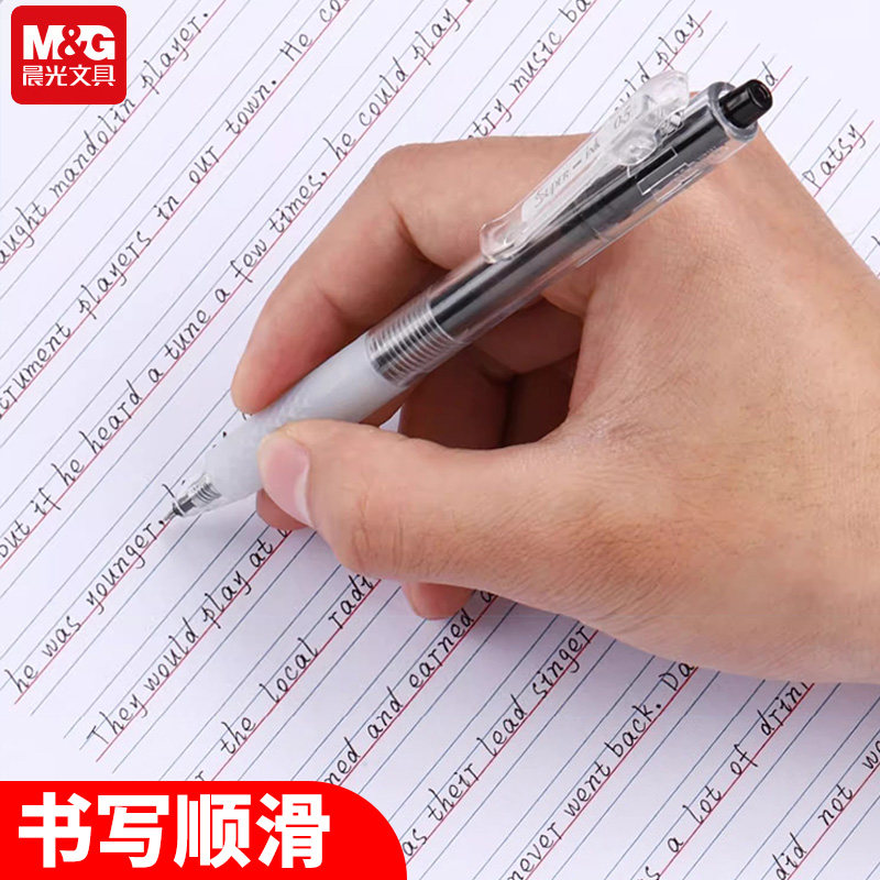 晨光中性笔按动式黑色水笔红色蓝色速干顺滑大容量学生用碳素笔