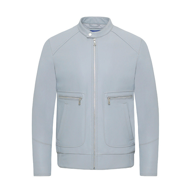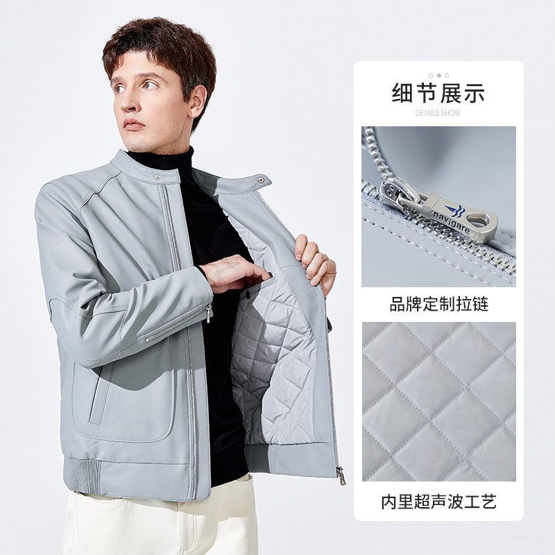 Navigare意大利小帆船灰色哈灵顿夹克外套男士休闲夹棉真皮皮衣