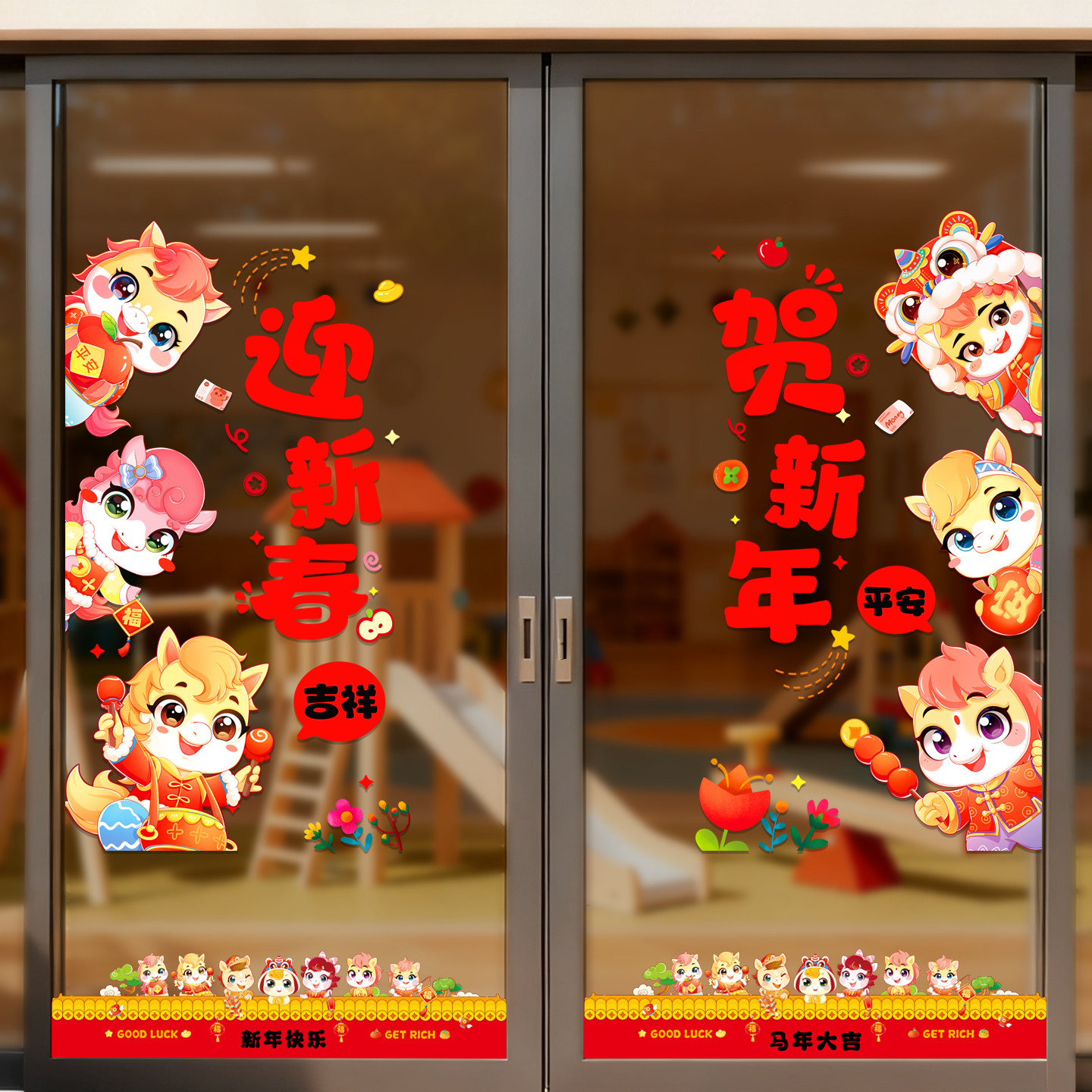2026新年窗花马年装饰新款玻璃门贴纸静电橱窗贴春节氛围布置贴画