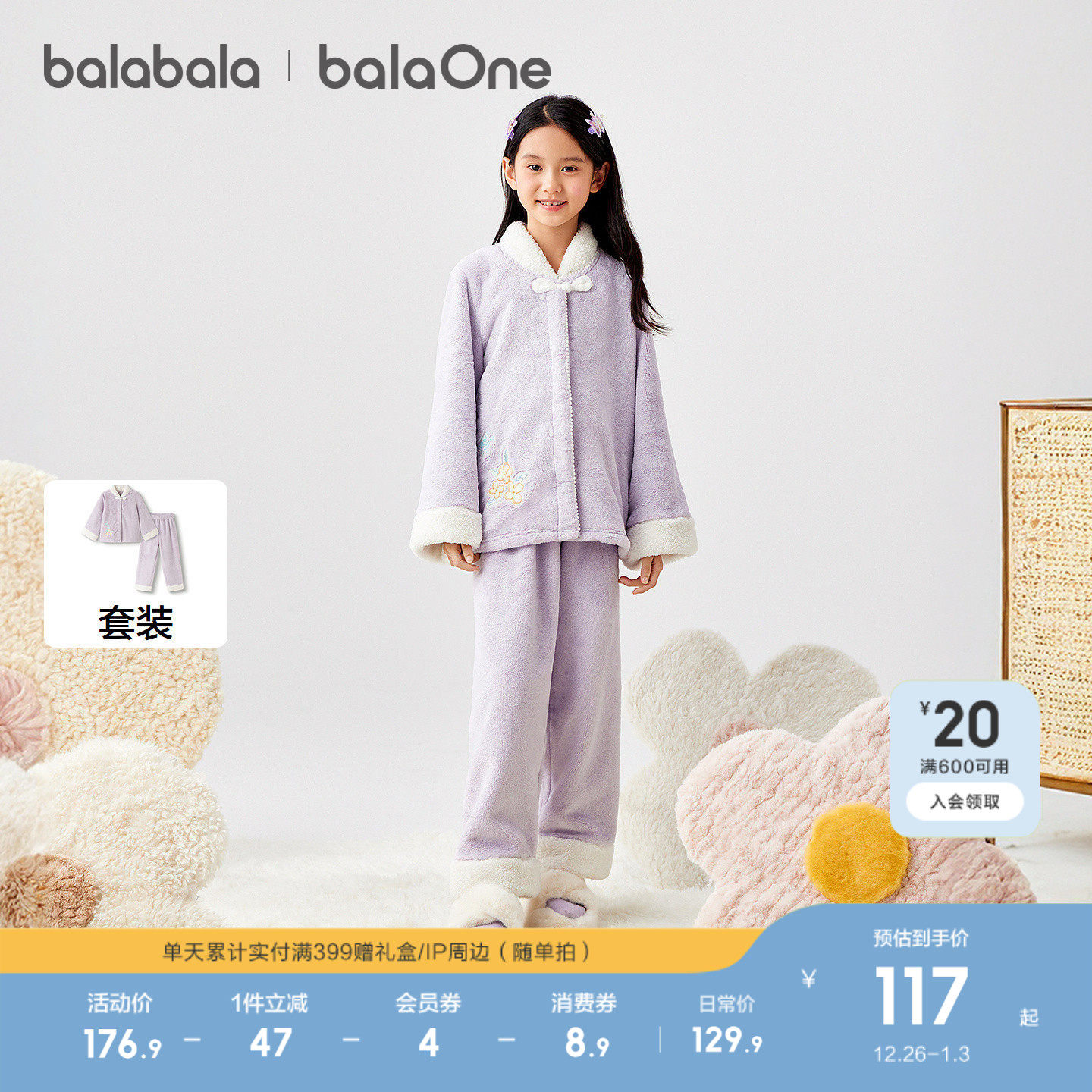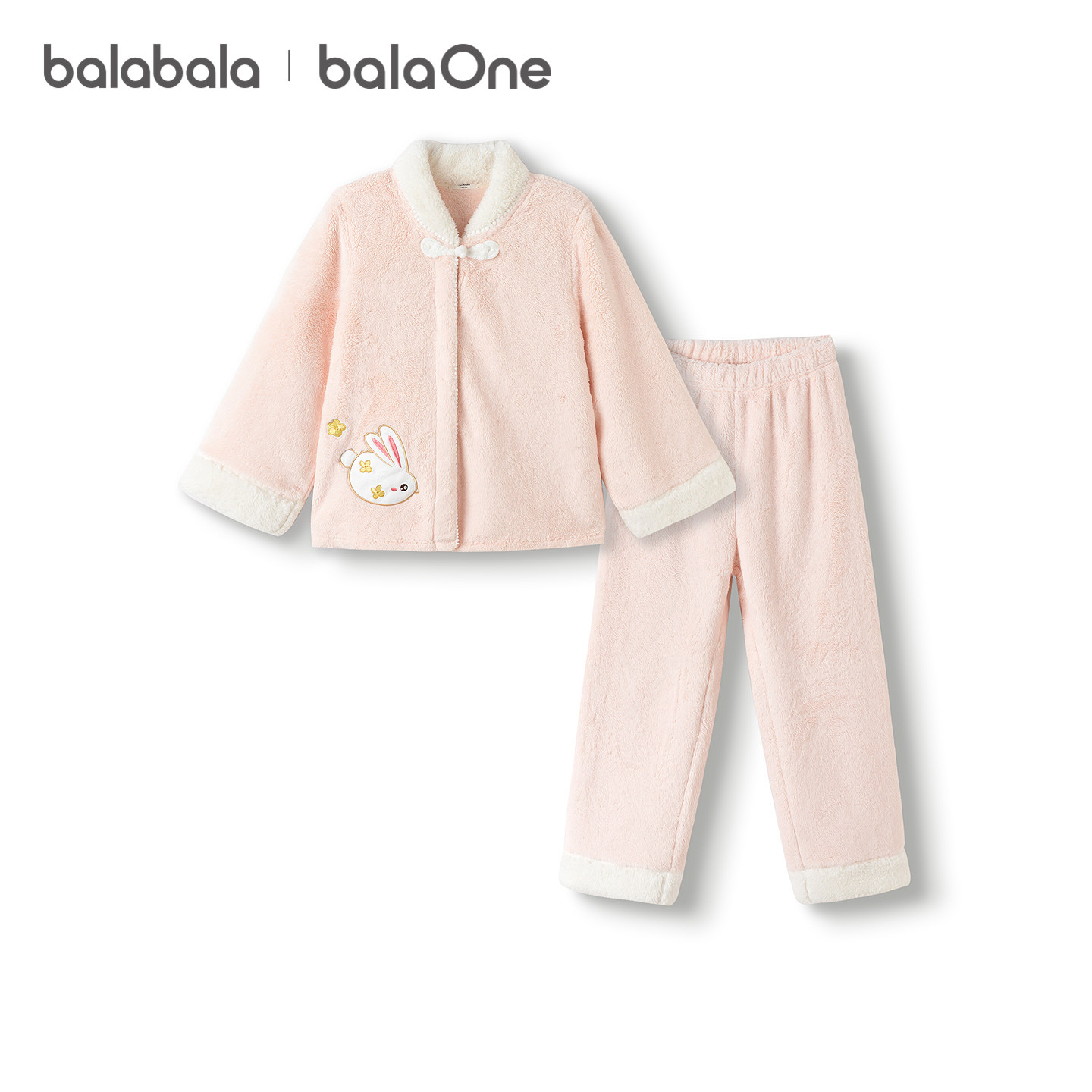 【balaOne】巴拉巴拉女童睡衣套装2025冬新款加厚法兰绒保暖国风