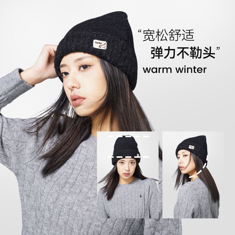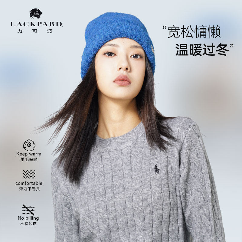 lackpard力可派帽子女士新款冬季羊毛混纺冷帽宽松版保暖针织帽