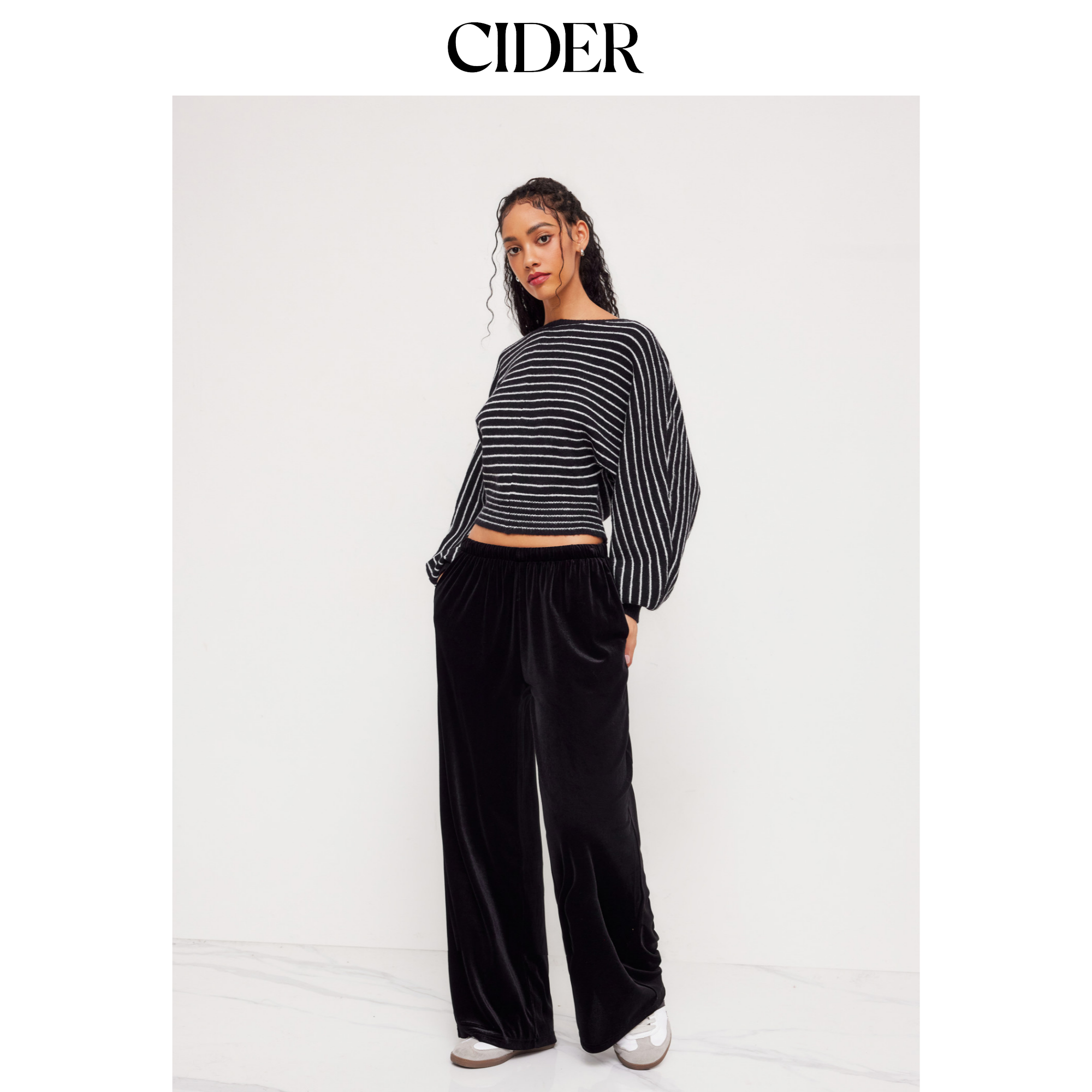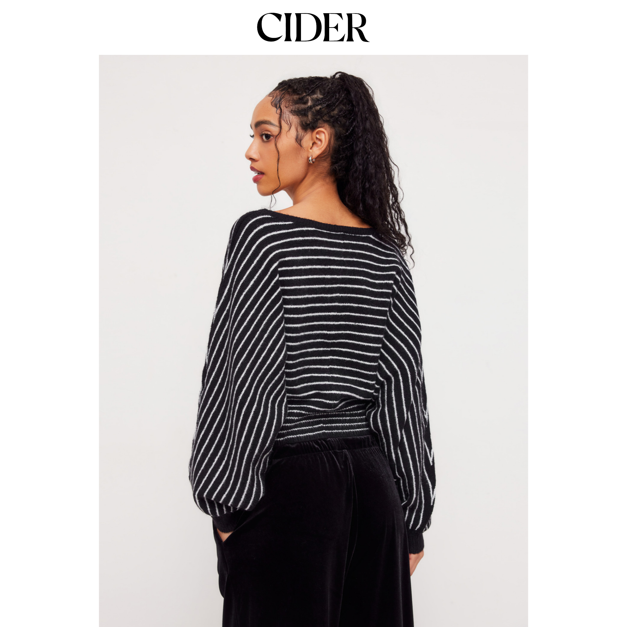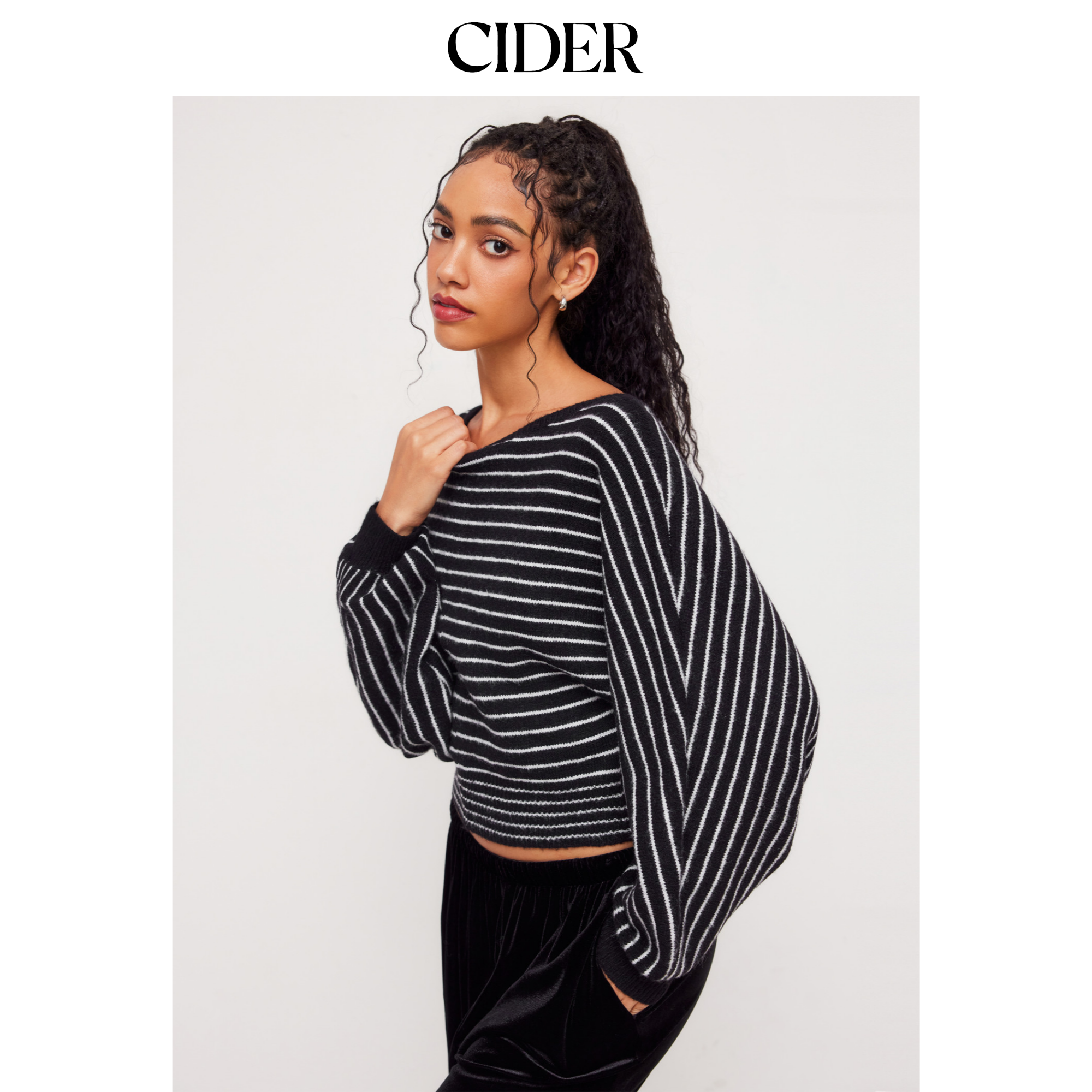 CIDER 秋冬新品女装针织船领条纹宽松毛衣113935191