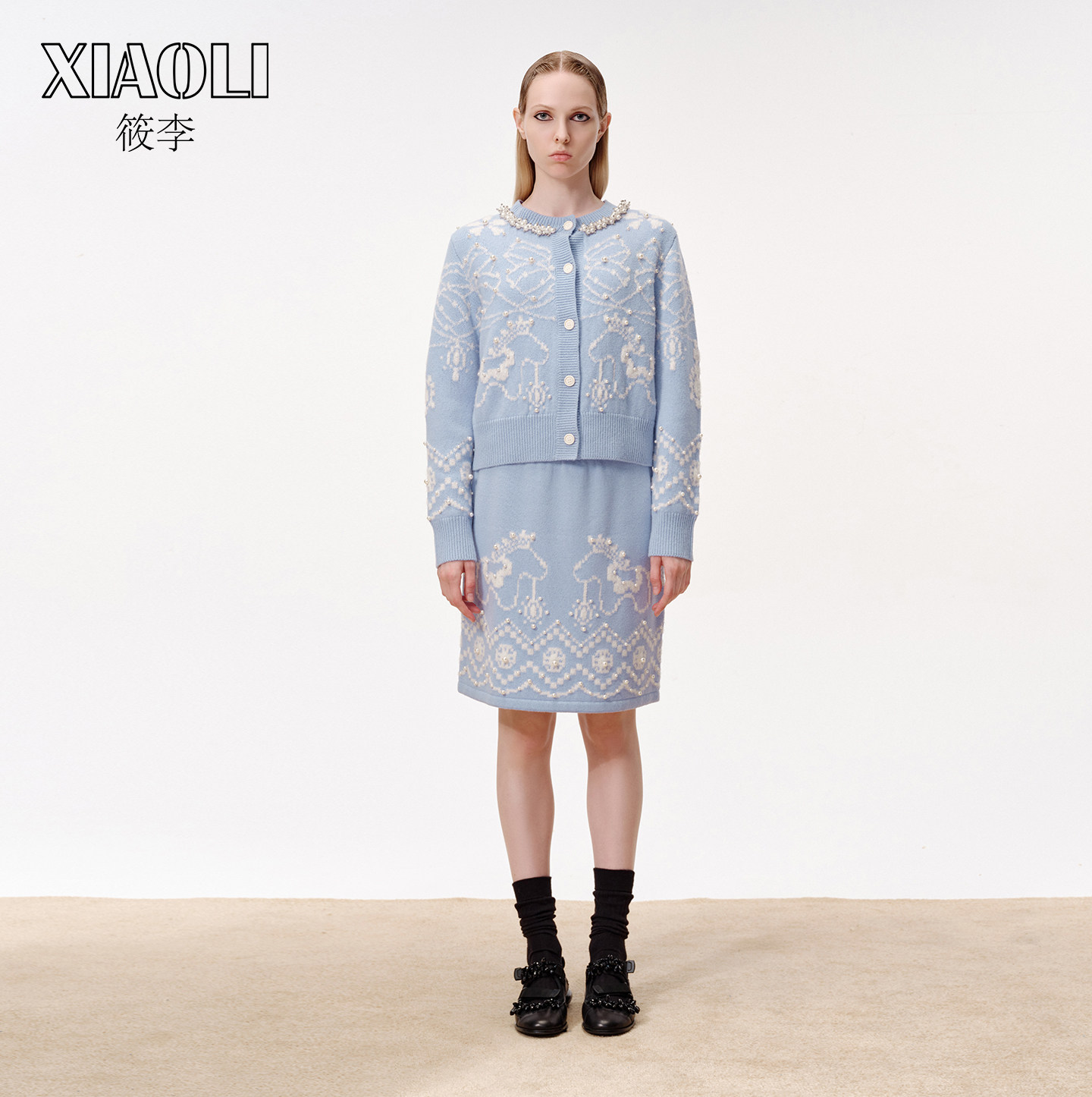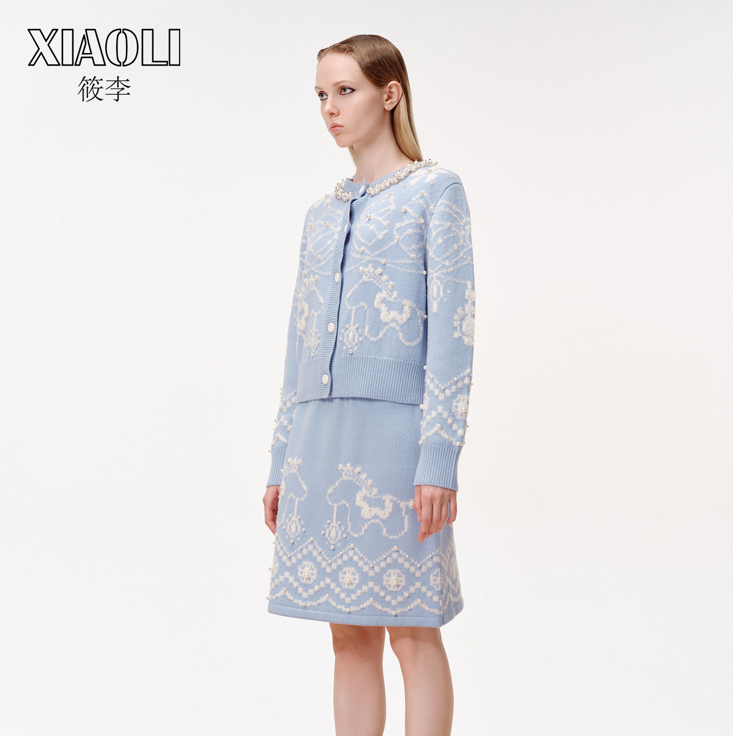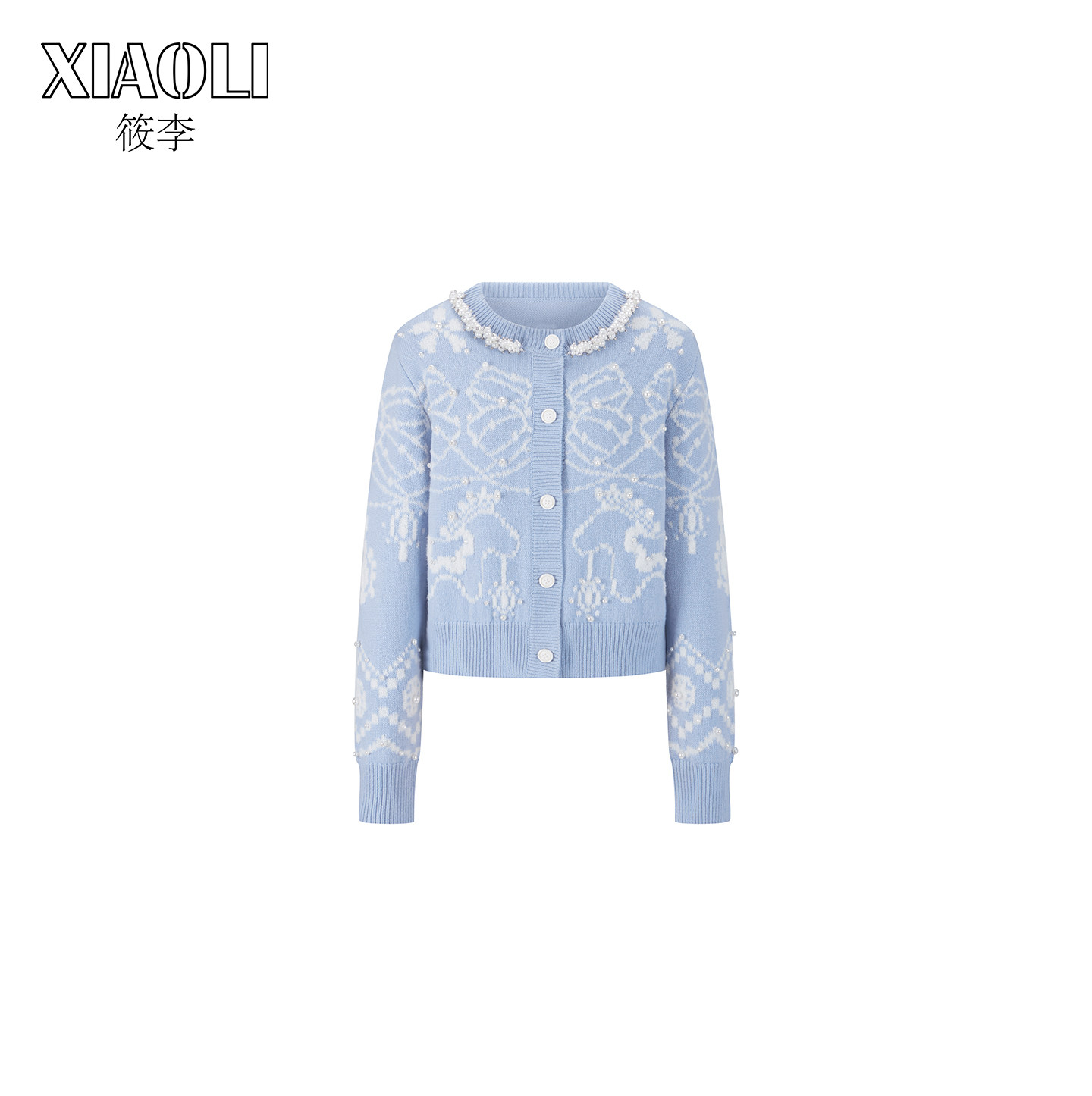 【XIAOLI筱李】费尔岛针织印花仿珍珠领开衫