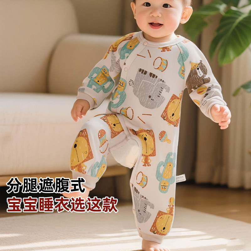 婴儿衣服开裆裤连体衣纯棉春装学尿春秋季纯棉薄款男女宝宝漏屁股