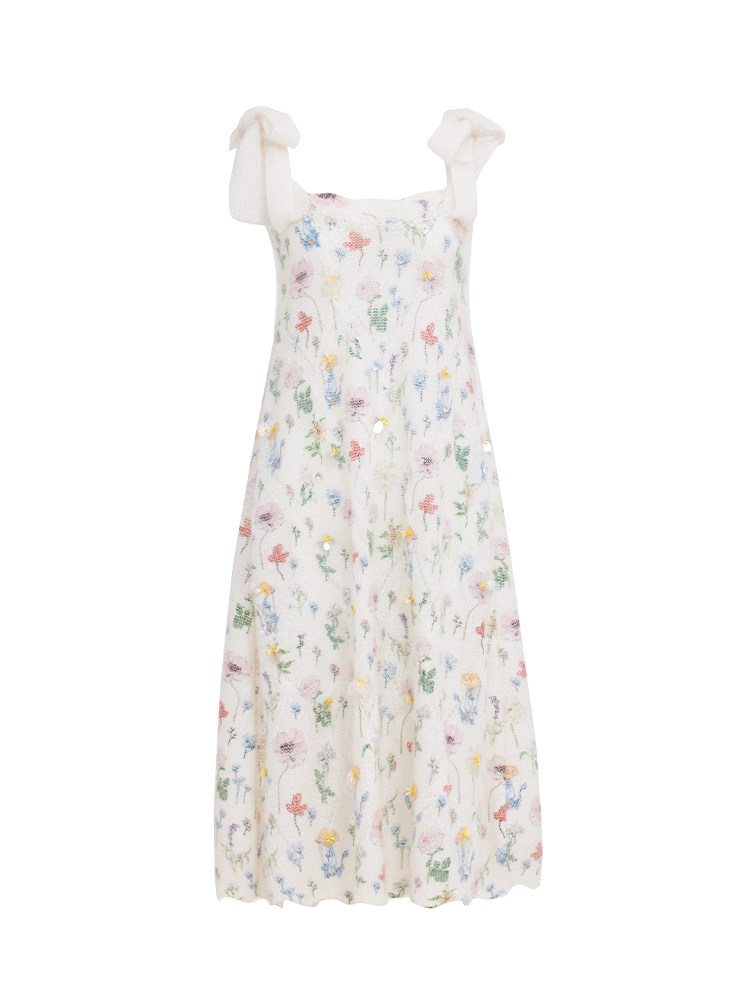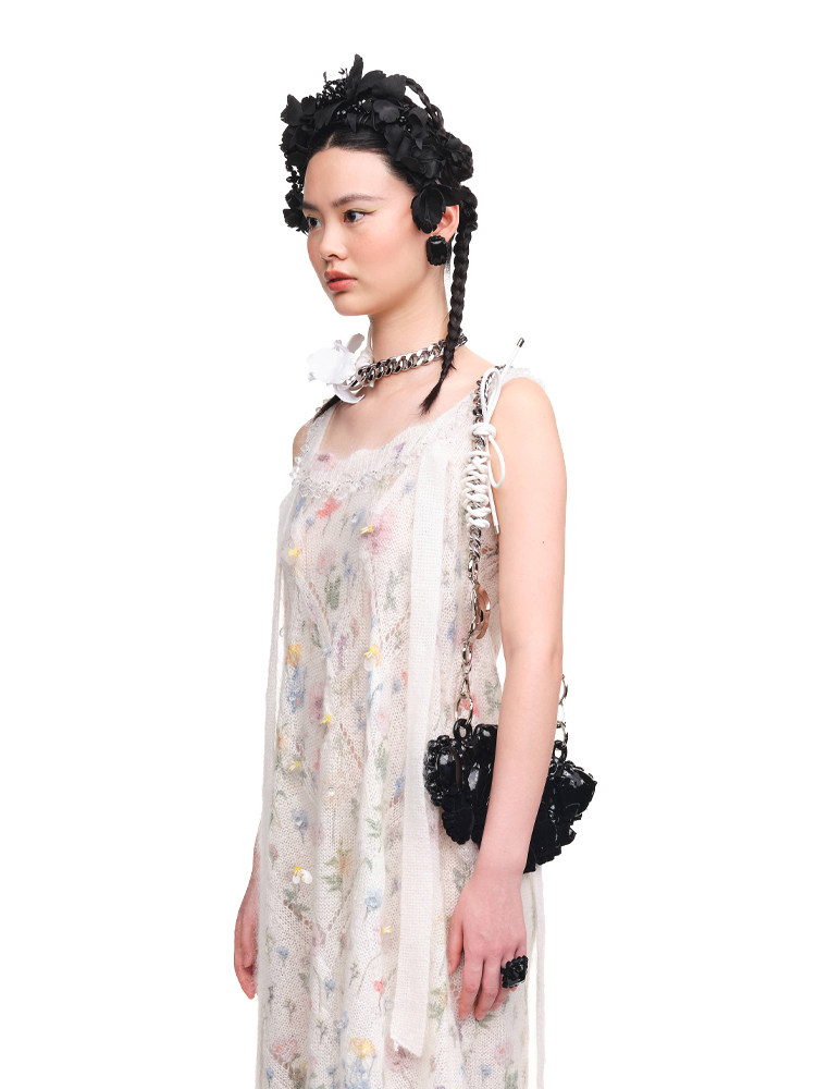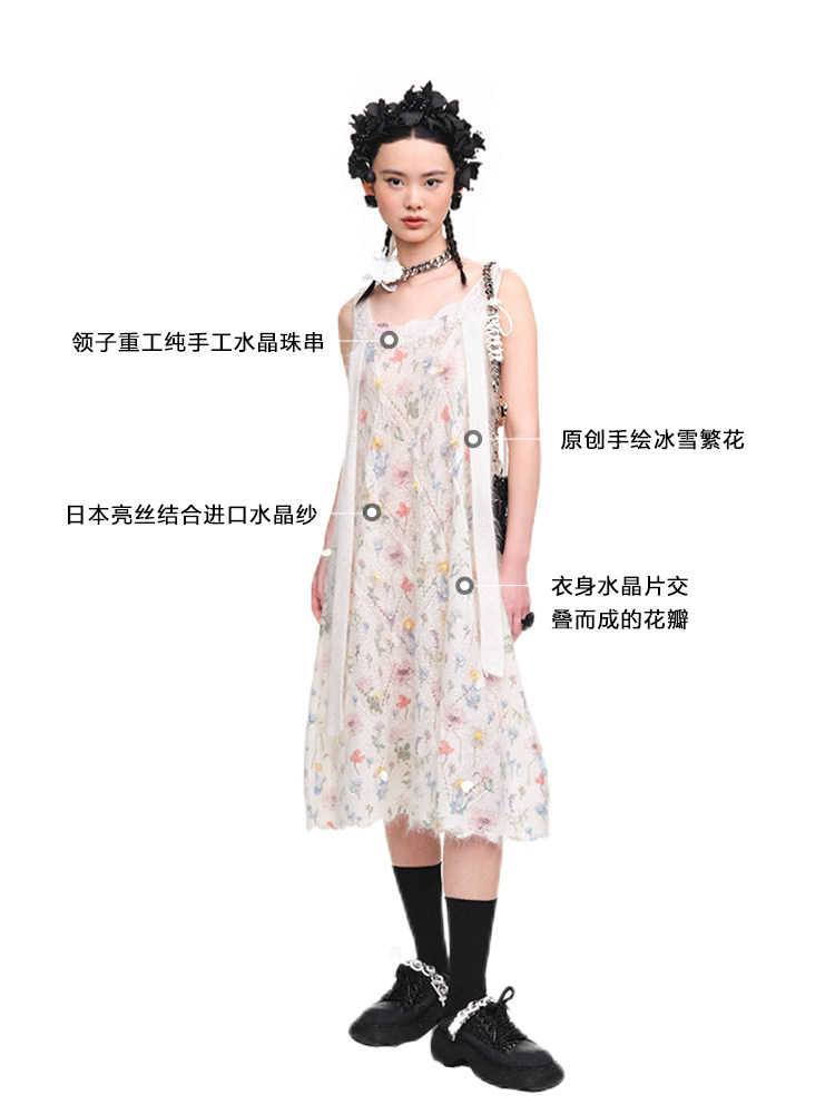 【设计师品牌XIAOLI筱李】23春夏手工订珠针织吊带连衣裙长款