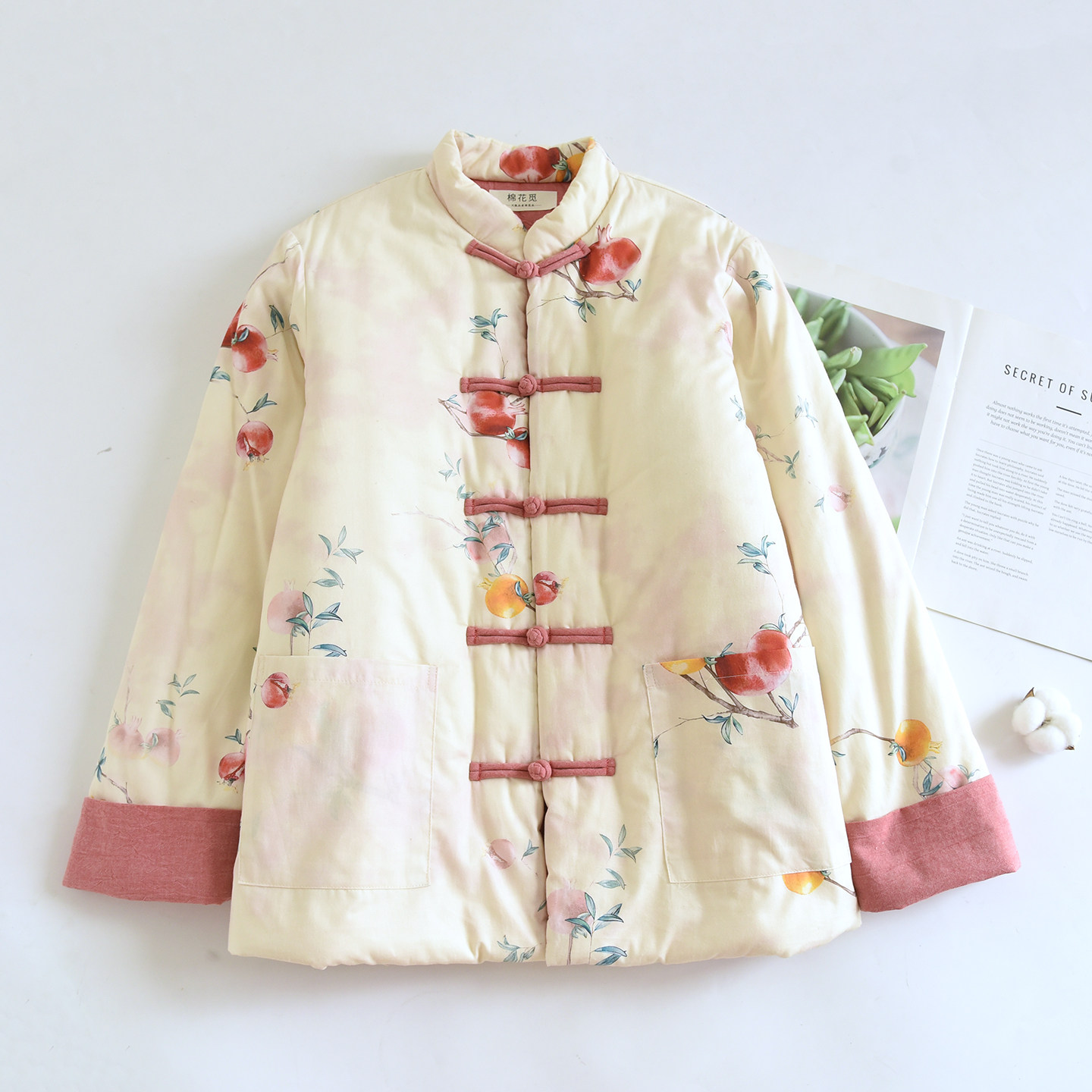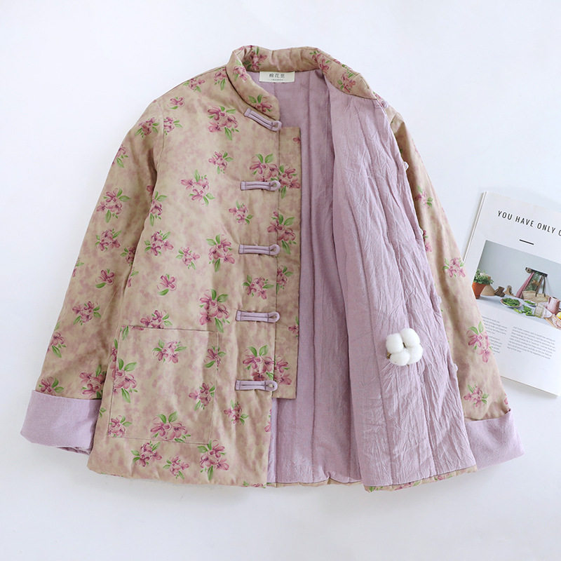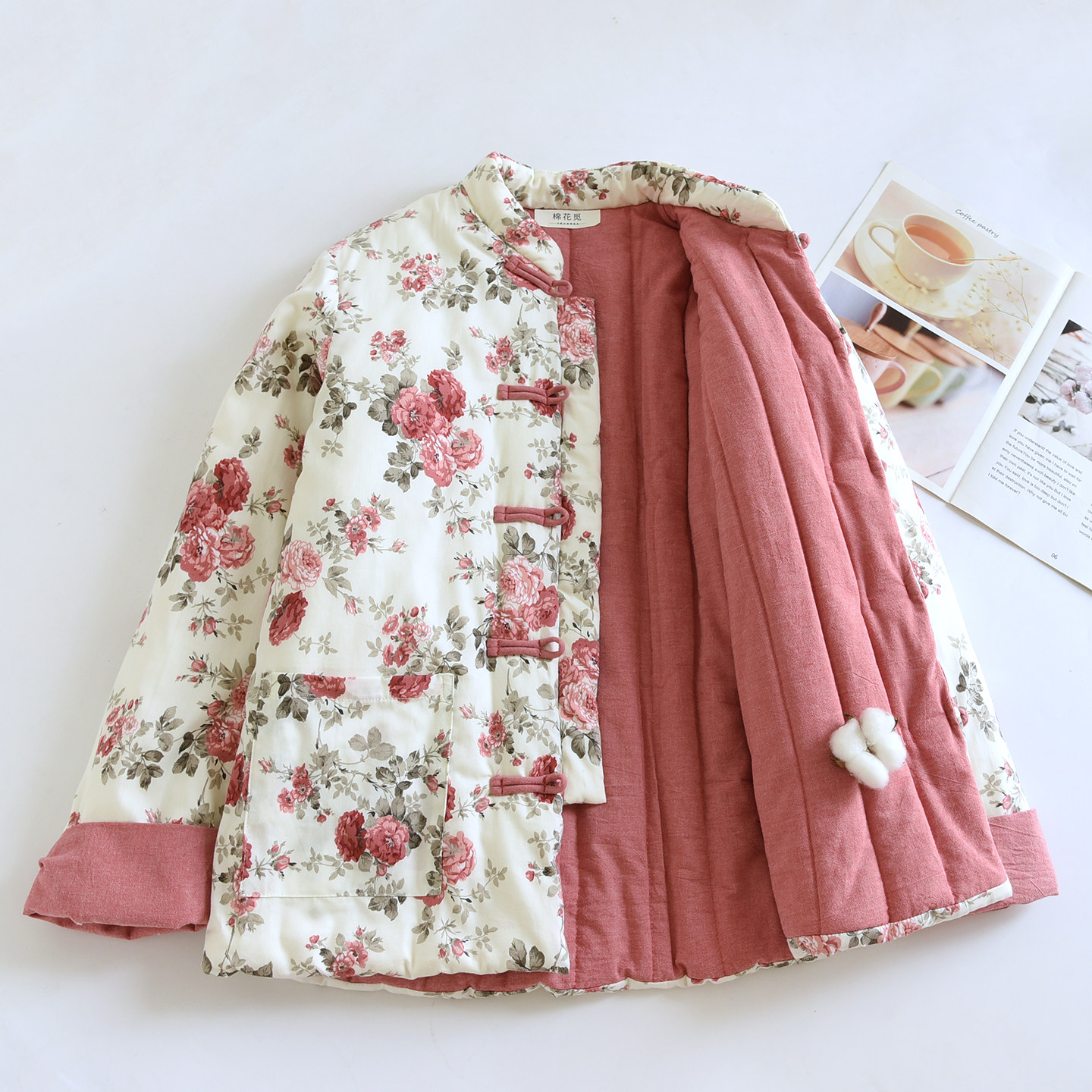 女士花棉袄手工盘扣 复古中国风棉衣保暖棉服秋冬加厚夹棉新中式