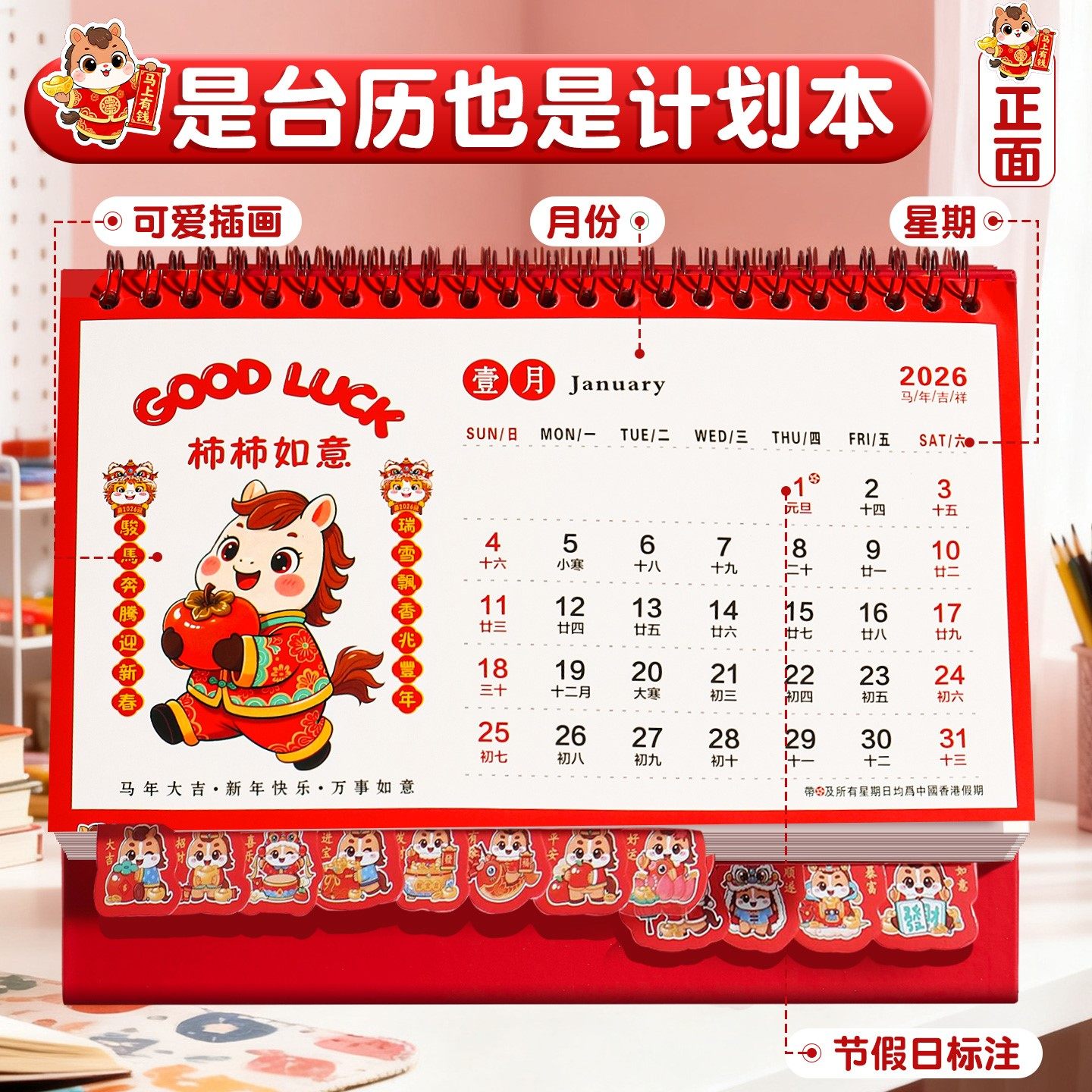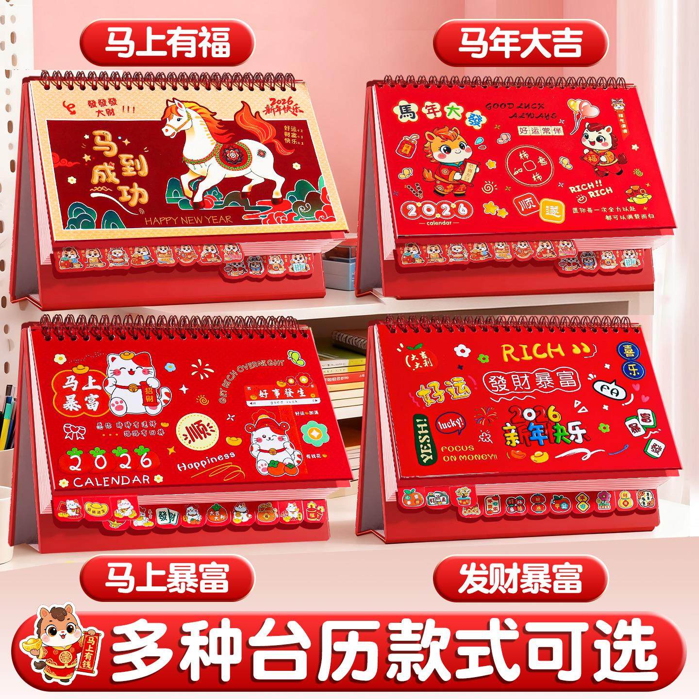 2026年新款台历创意卡通日历全年马年迷你小台历桌面摆件办公室学生每日计划表工作自律打卡记事mini计划月历