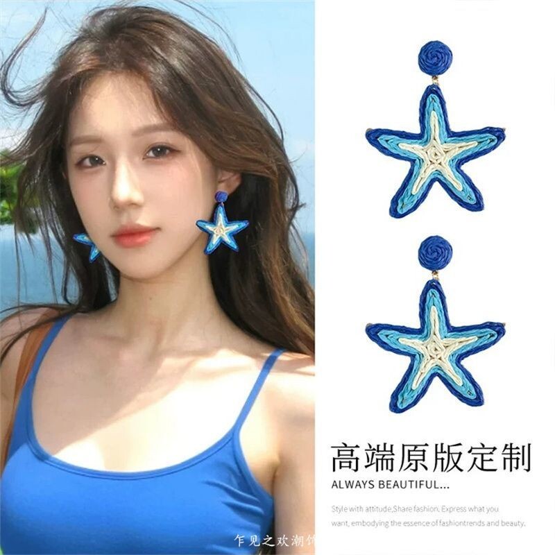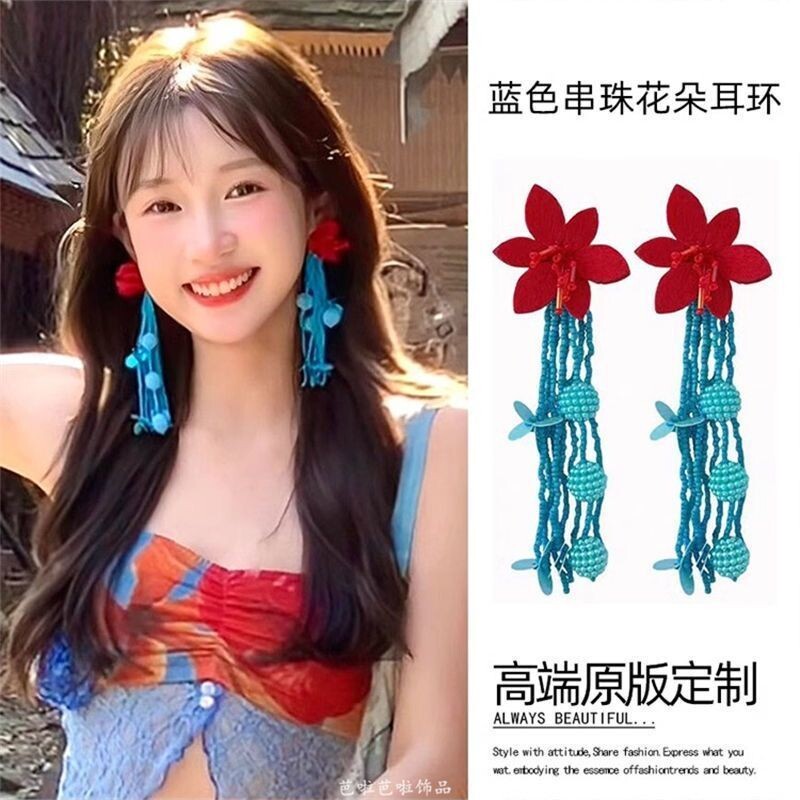 易梦玲同款编织大花朵耳环女海边度假风夸张显脸小耳饰无耳洞耳夹