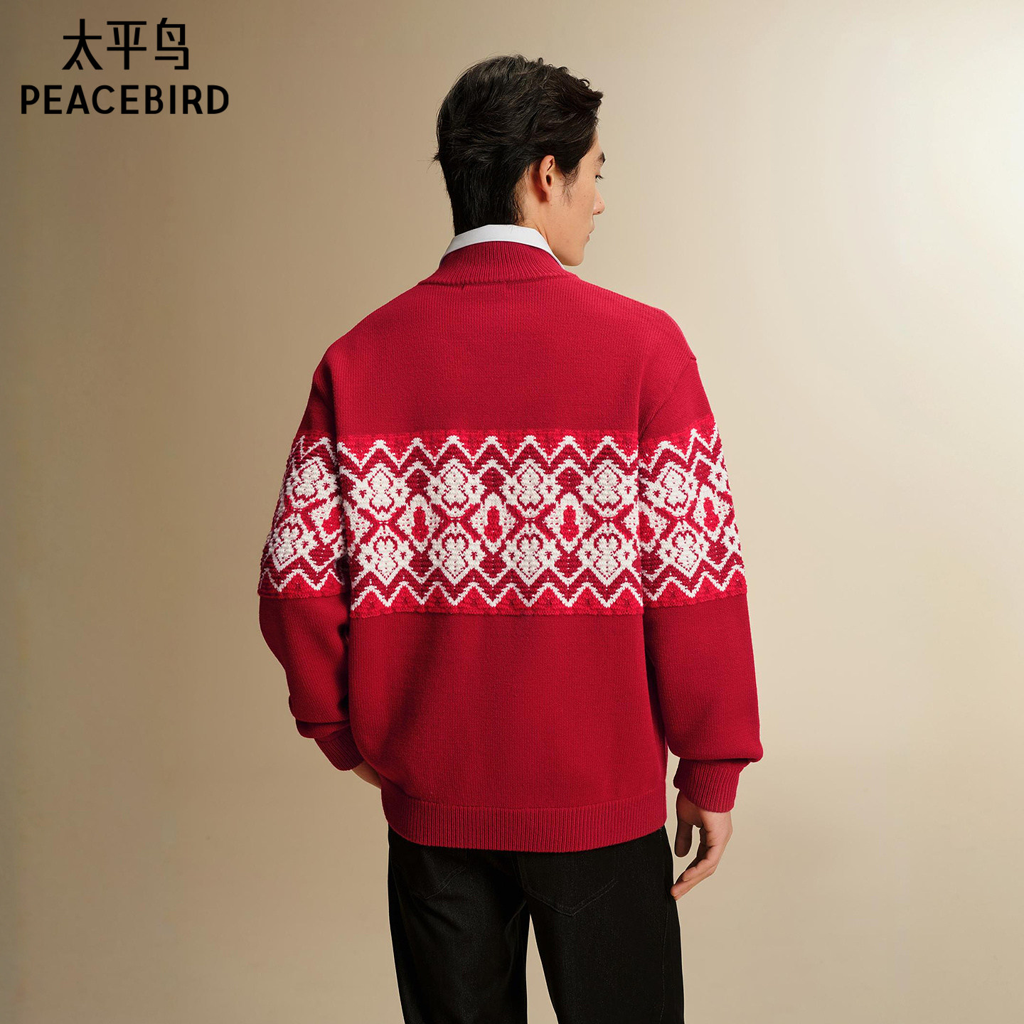 【商场同款】太平鸟男装 新年毛衣男费尔岛潮流开衫毛衫B2EAG1128