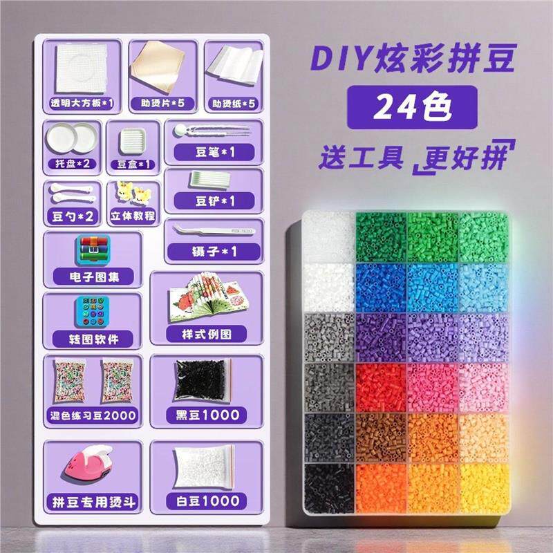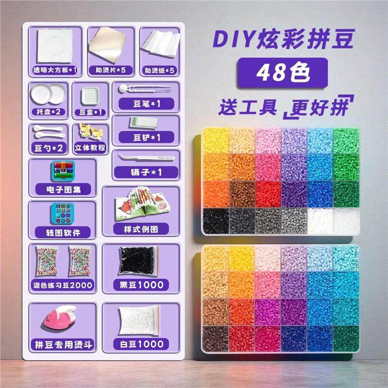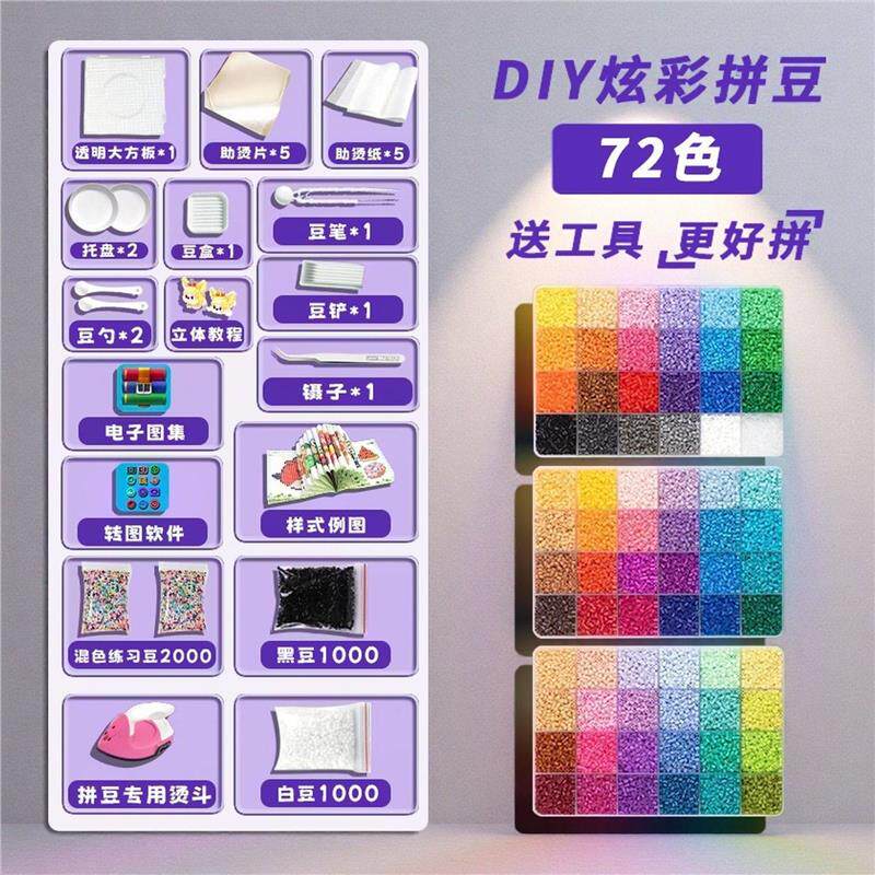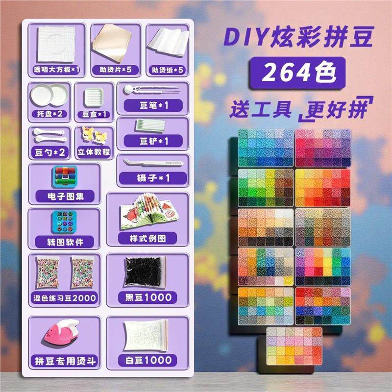 拼拼豆豆手工diy套装3d立体拼豆融合豆女男孩儿童益智6岁拼图玩具