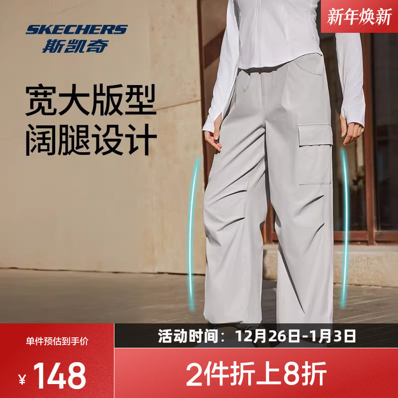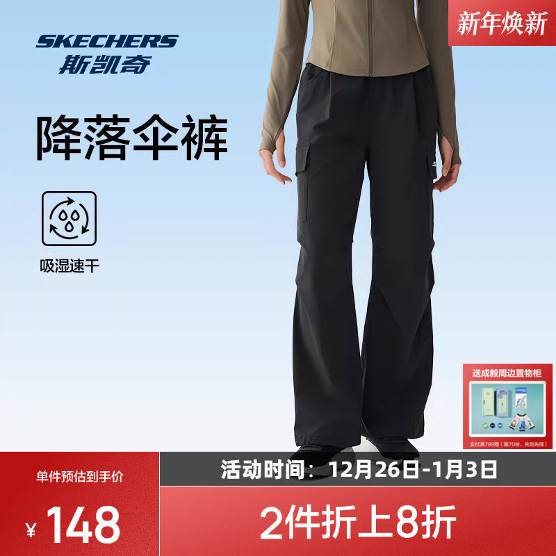 斯凯奇伞兵裤2025年男女降落伞裤工装长裤吸湿速干宽松运动裤