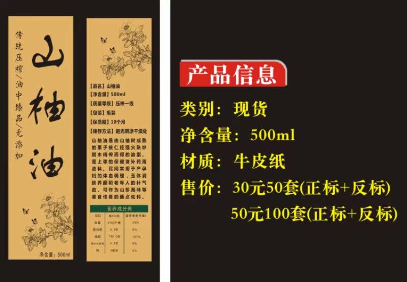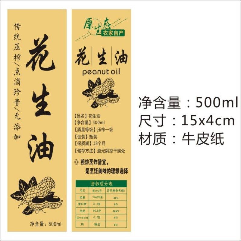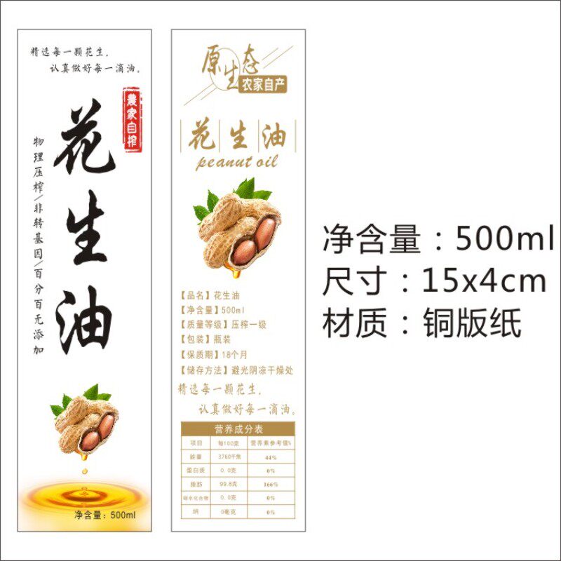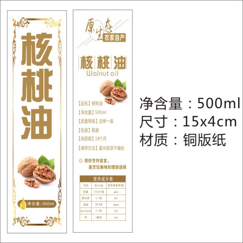 定制山柚油食用花生油核桃油石墨香油芝麻油标签彩色不干胶瓶贴纸B
