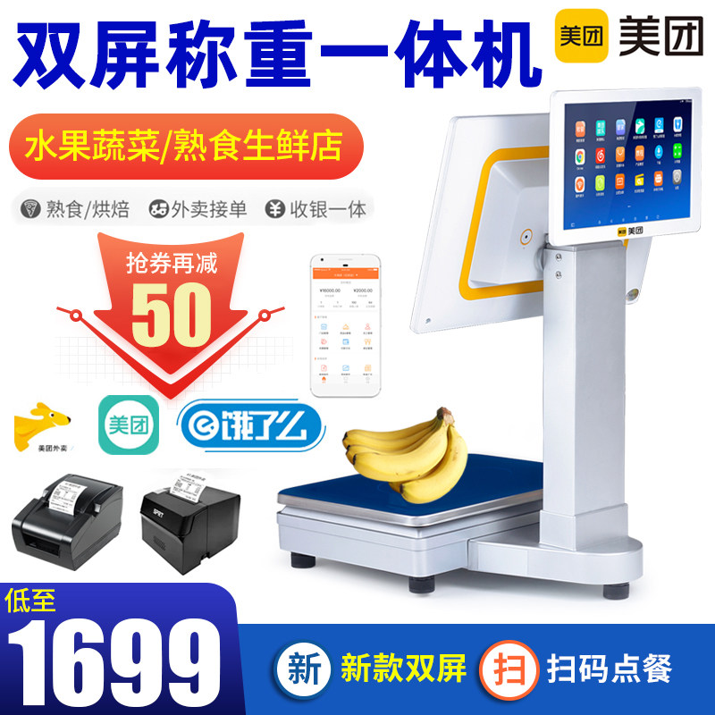 美团称重收银机j一体机电子秤水果店麻辣烫熟食店收银秤生鲜果蔬
