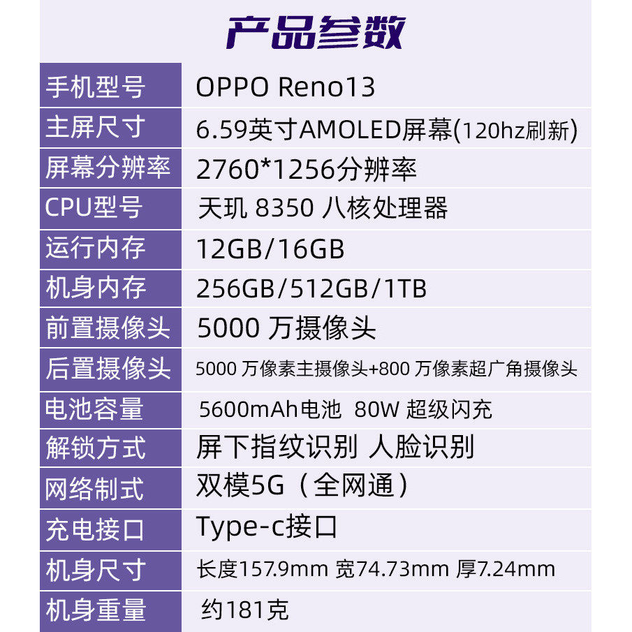 OPPO Reno13 超美小直屏AI高清实况照片学生拍照智能新品旗舰手机