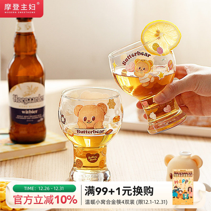 【摩登主妇&黄油小熊】啤酒杯玻璃杯家用喝水杯高颜值杯子果汁杯