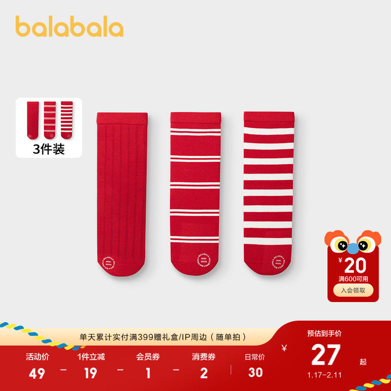 巴拉巴拉儿童袜子2025年新款春秋装本命年男女童无尺码棉袜三双装