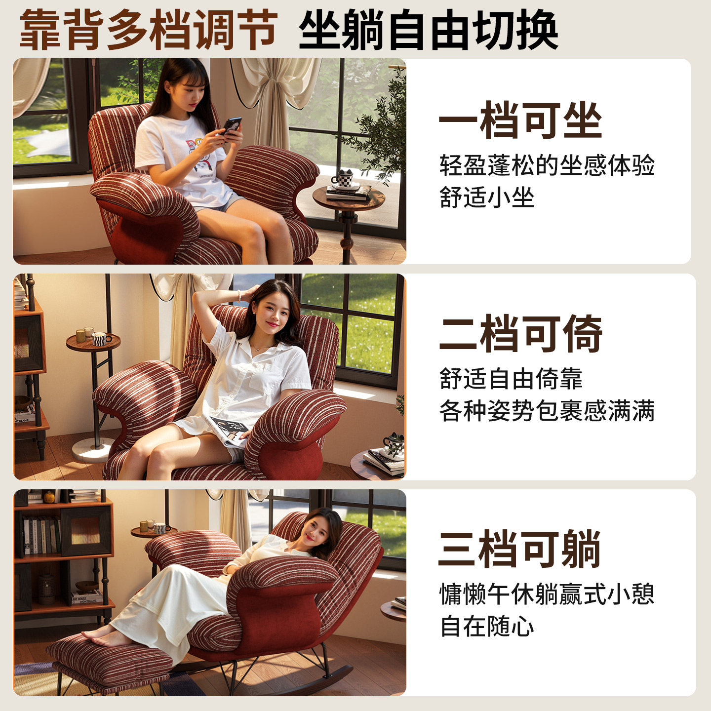 摇摇椅成人躺椅沙发懒人可躺可睡客厅阳台休闲家用折叠摇椅沙发椅
