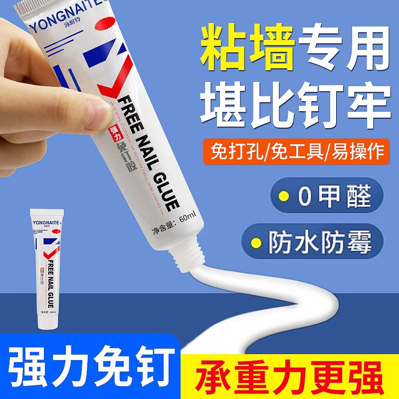 免钉胶强力高粘度粘墙面金属镜子瓷砖踢脚线厨卫置物架贴墙多功能粘合剂防水家用卫生间免打孔胶