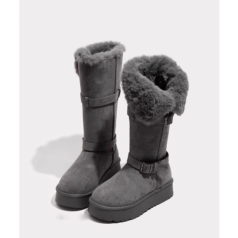 高筒灰色雪地靴女2025冬季新款加绒加厚中长筒雪地棉靴子棉鞋鞋子