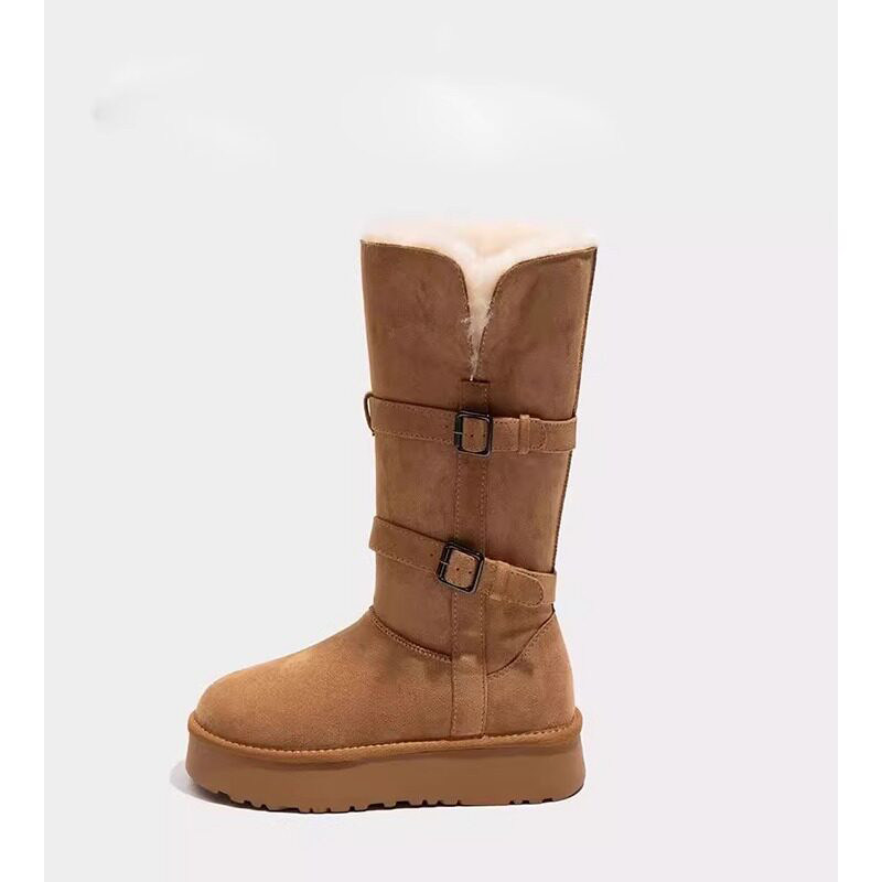内增高厚底棕色长筒雪地靴女2025冬新款两穿加绒加厚中筒东北棉鞋
