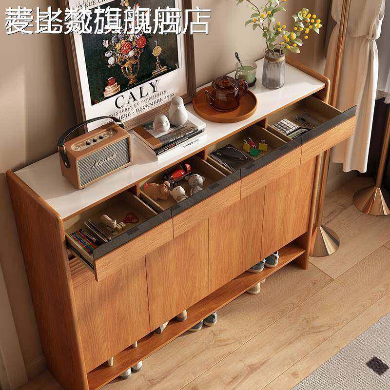 麦比梵实木鞋柜坐凳一体家用门口玄关入户换鞋凳高级感简易防尘收纳柜子床笠拉车