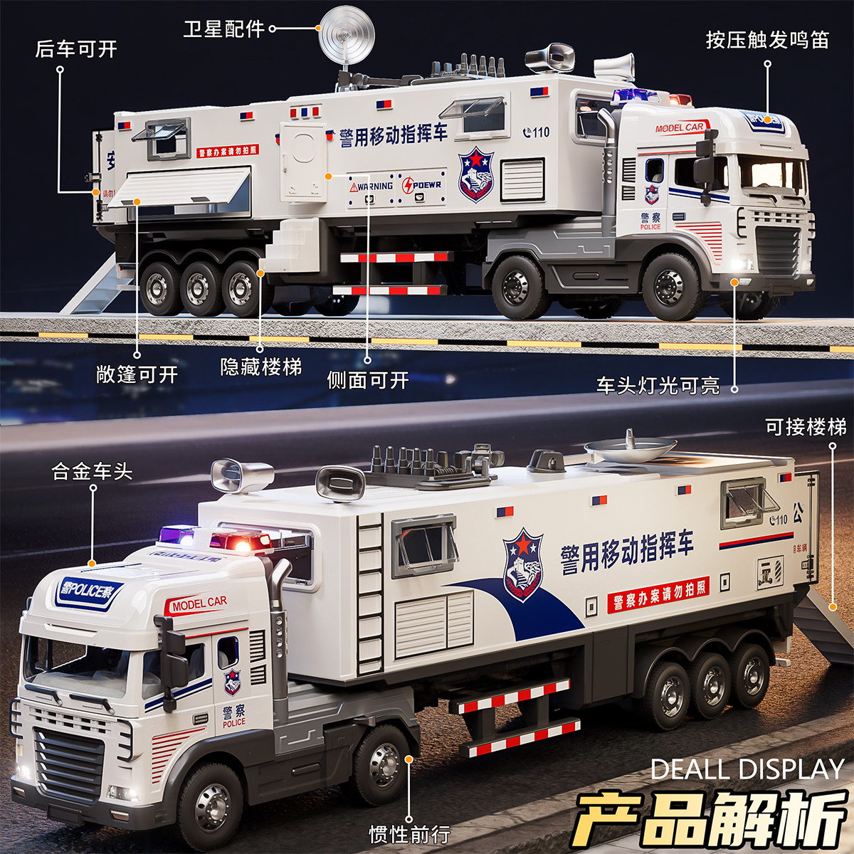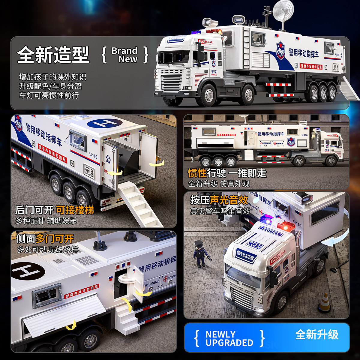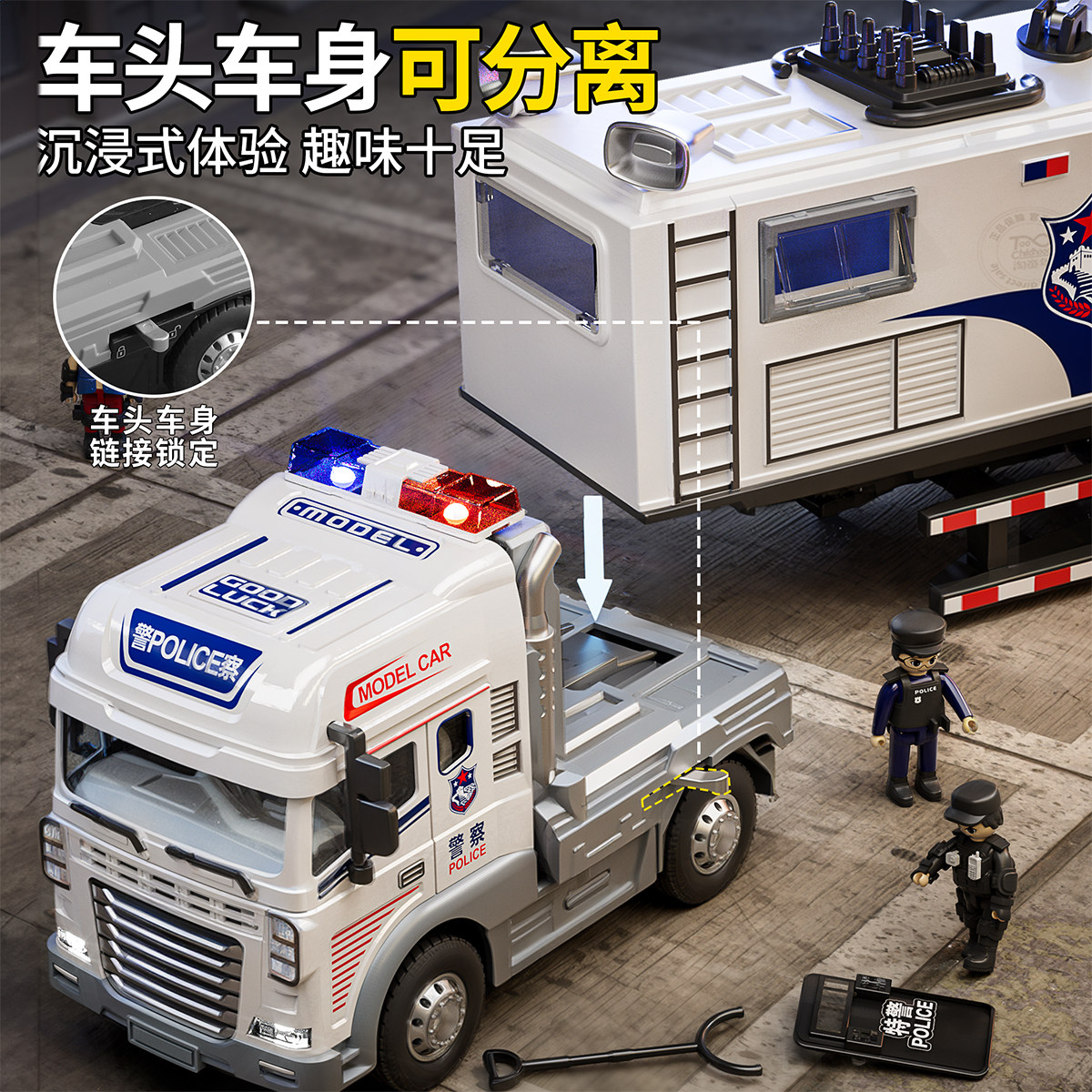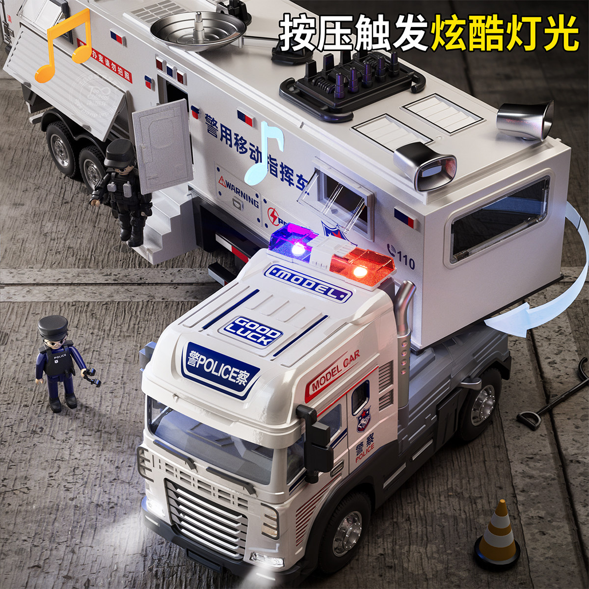合金警察车玩具儿童公安110警车模型大卡车男孩礼物消防车加长