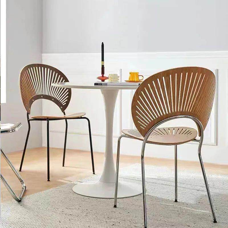 北欧实木贝壳椅餐椅靠背椅网红椅子法式复古中古简约餐桌椅化妆椅