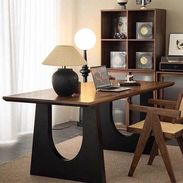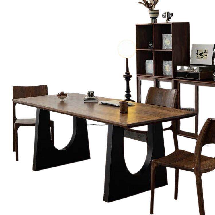 实木餐桌胡桃木色客厅大长书桌工作台大板餐书桌一体会议办公桌