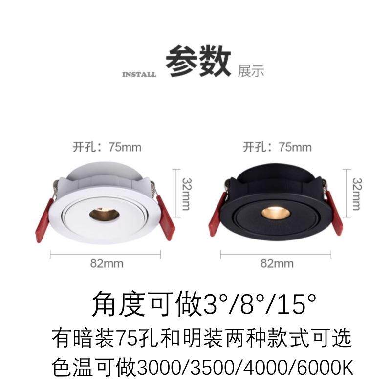 一束聚光射灯超薄小角度嵌入式3W茶室氛围灯3度8度15度餐桌博物馆