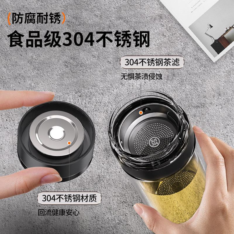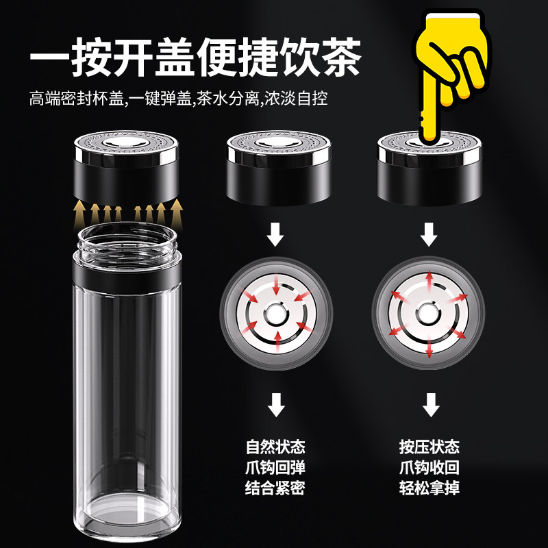 宝选一键开盖水杯车载双层玻璃杯男士泡茶保温速开茶水分离杯茶杯