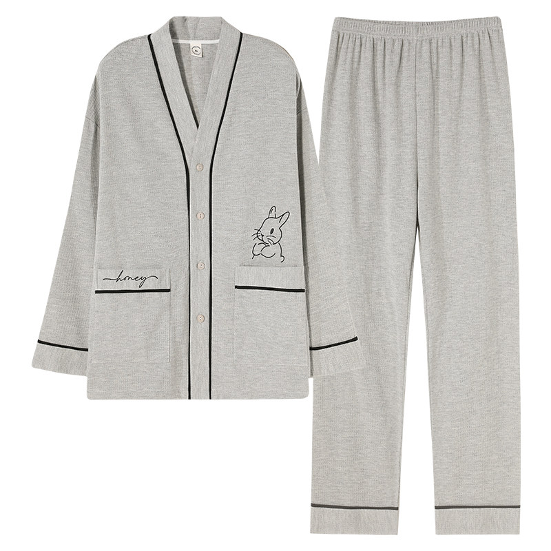 安比斯情侣睡衣舒适纯棉秋季女长袖男女同款休闲家居服套装可出门