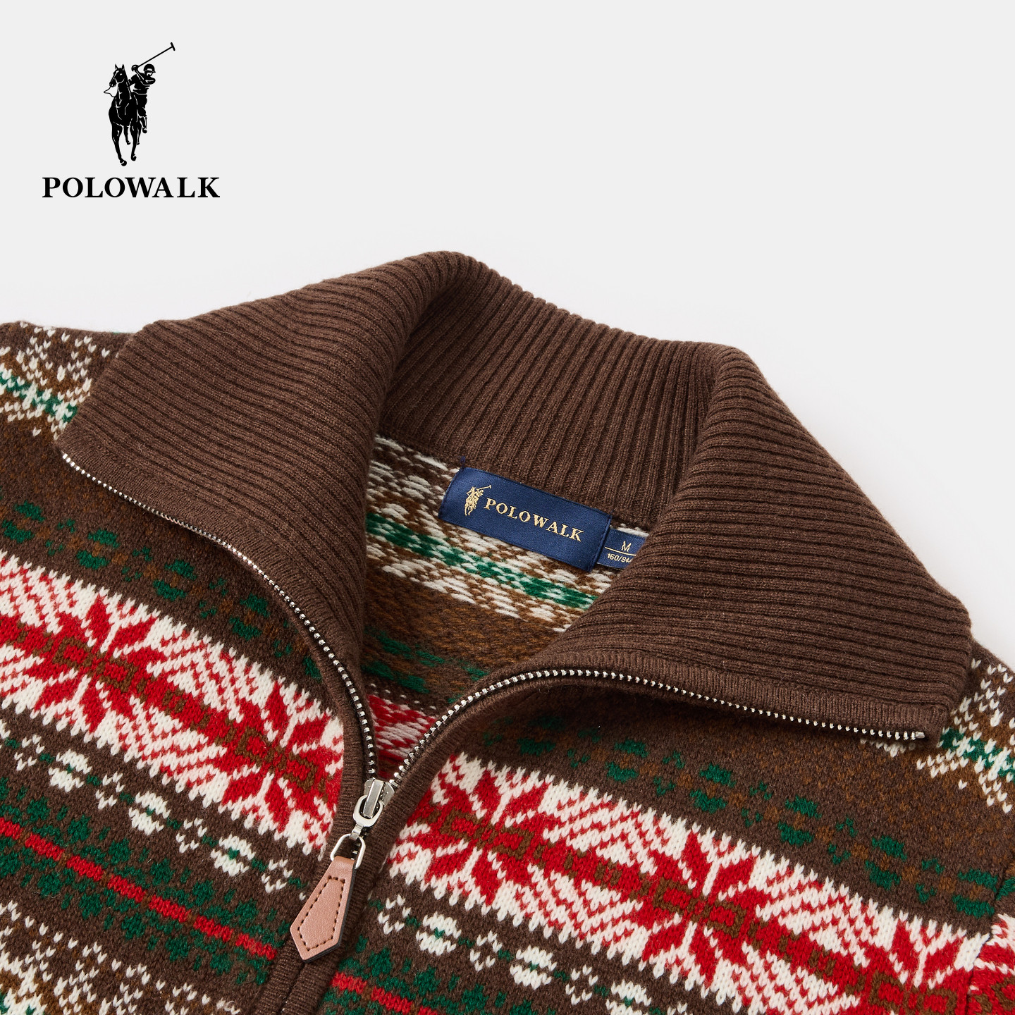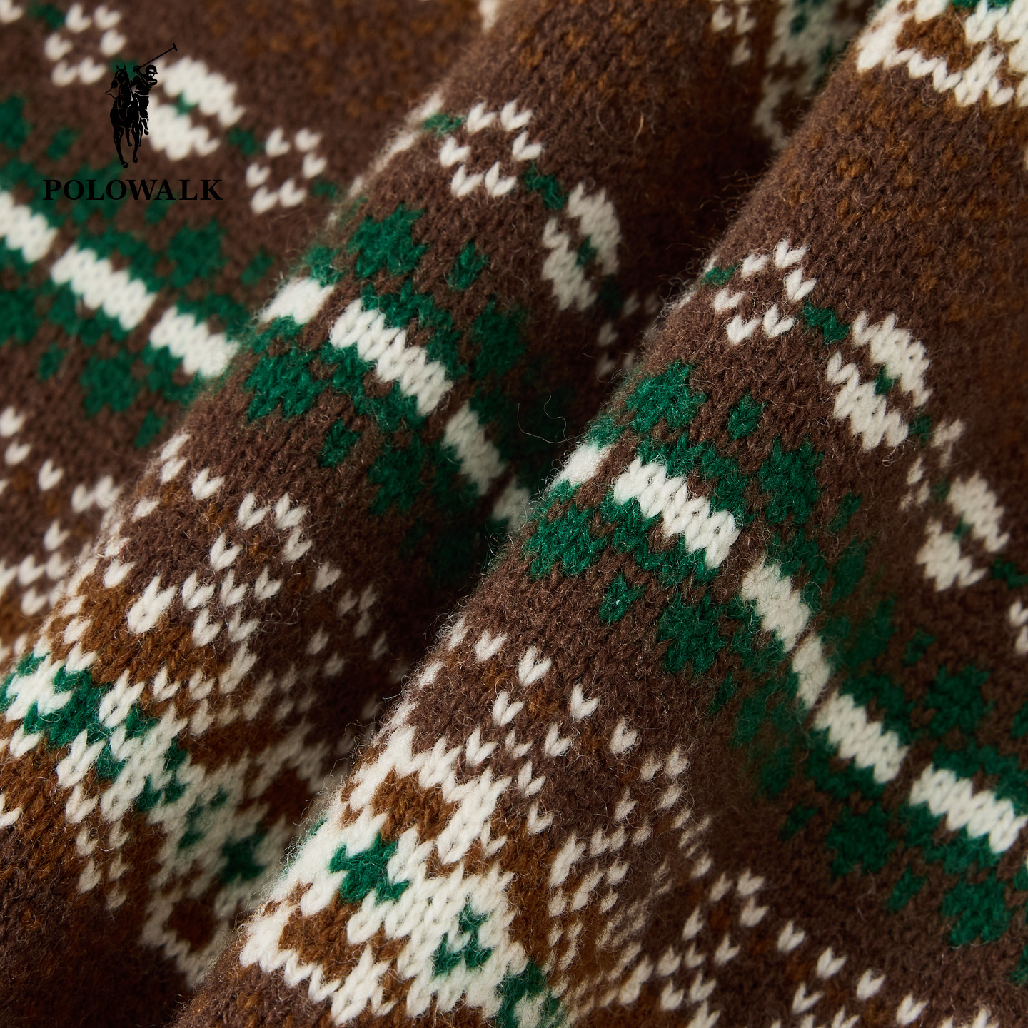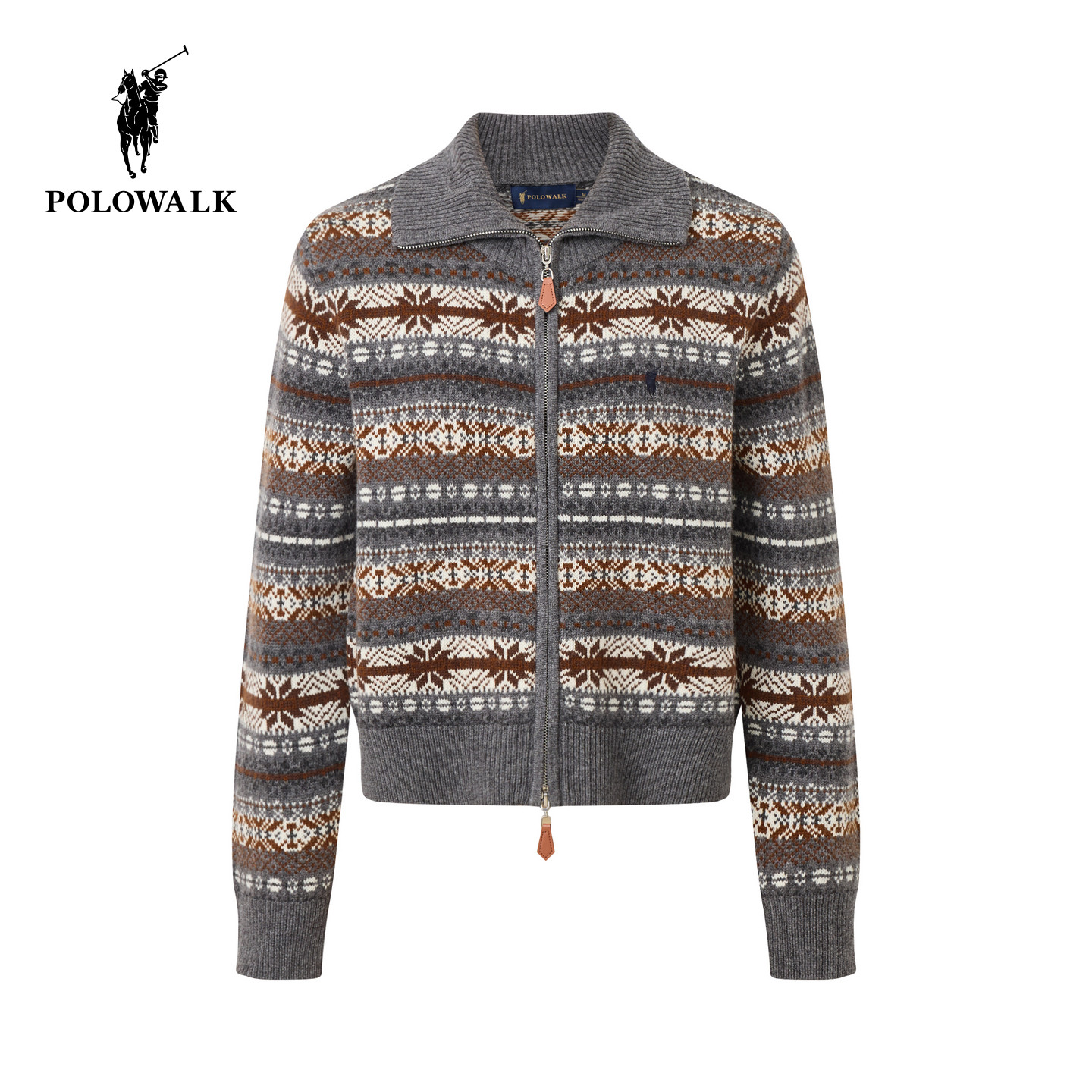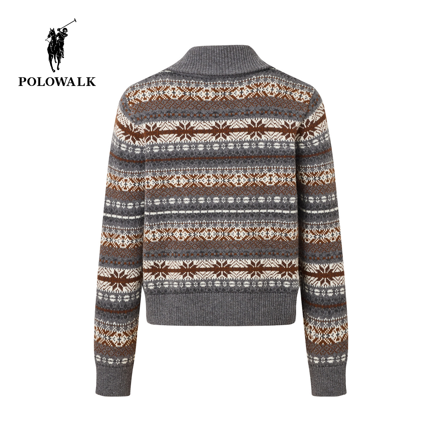 【100%绵羊毛】POLOWALK女式羊毛衫2025冬季新品翻领费尔岛风开衫