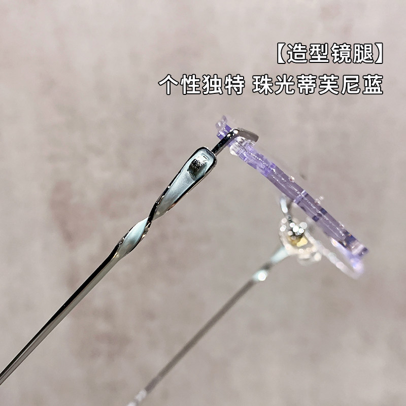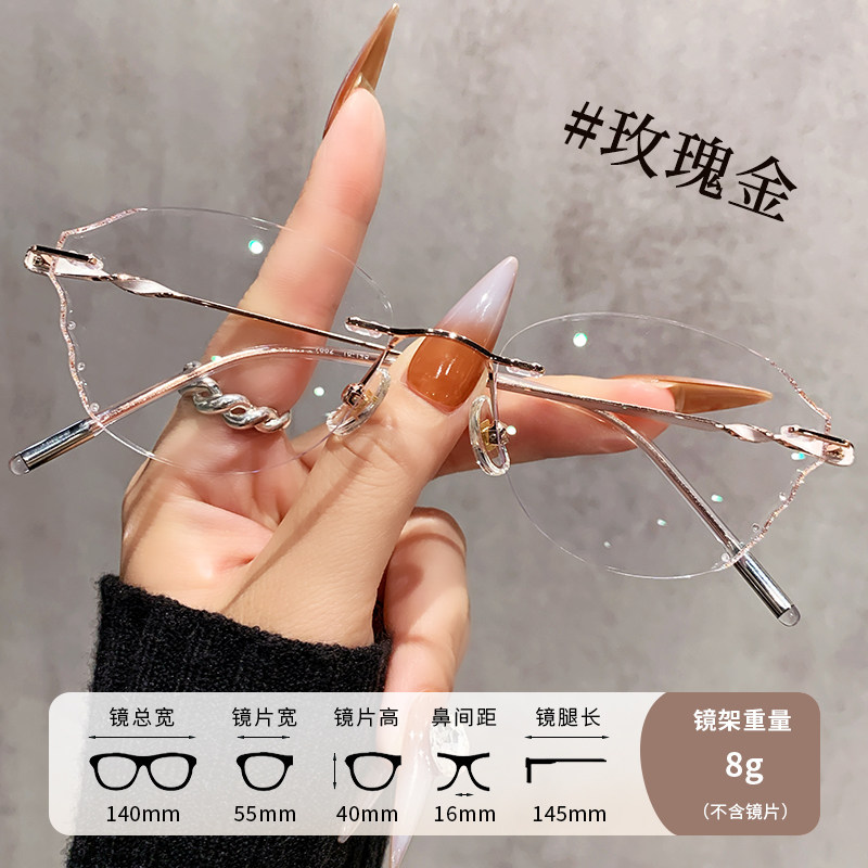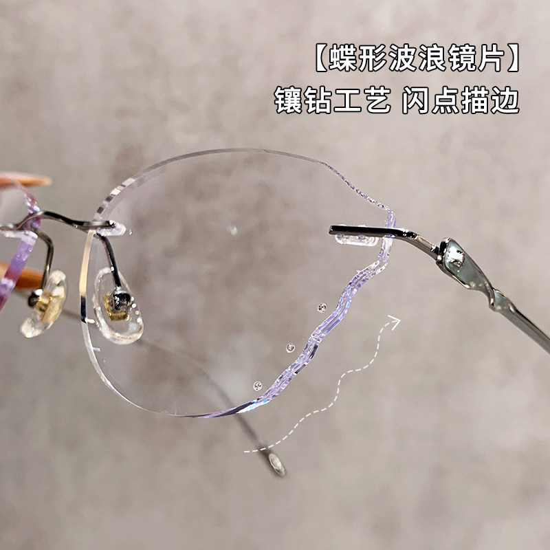 超轻蝶形无框眼镜女近视可配度数高级感防蓝光钻石切边素颜眼睛架